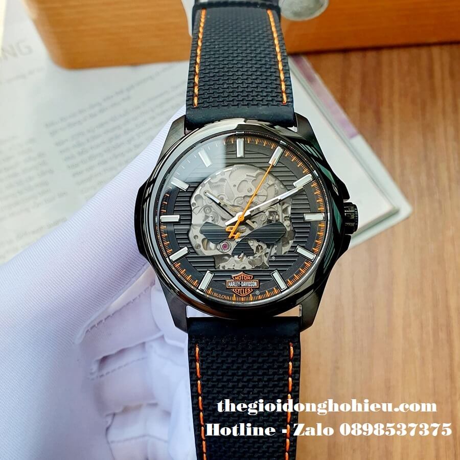 Một phiên bản siêu hiếm và độc đáo của Bulova kết hợp với hãng xe Harley Davidson với thiết kế Skeleton lộ cơ hình đầu lâu lớn ở giữa dial tạo nên vẻ đẹp cực cool cho anh em