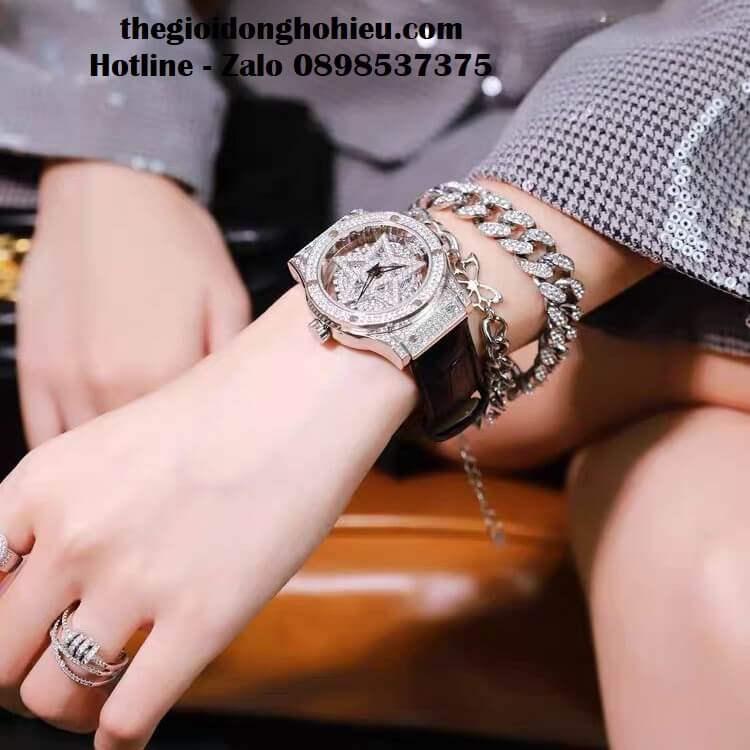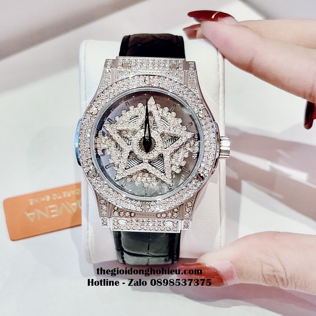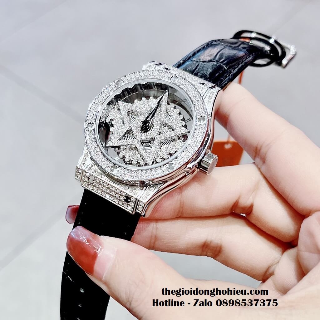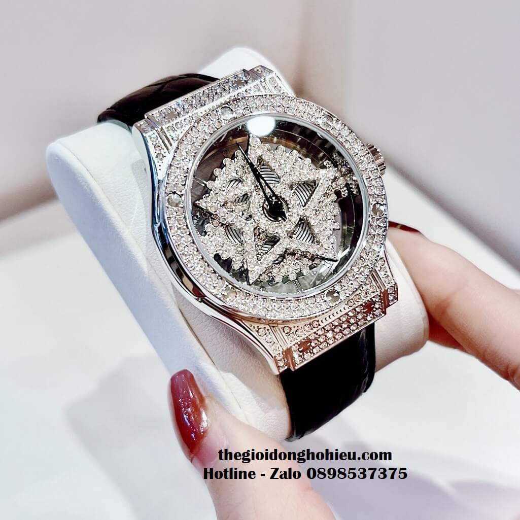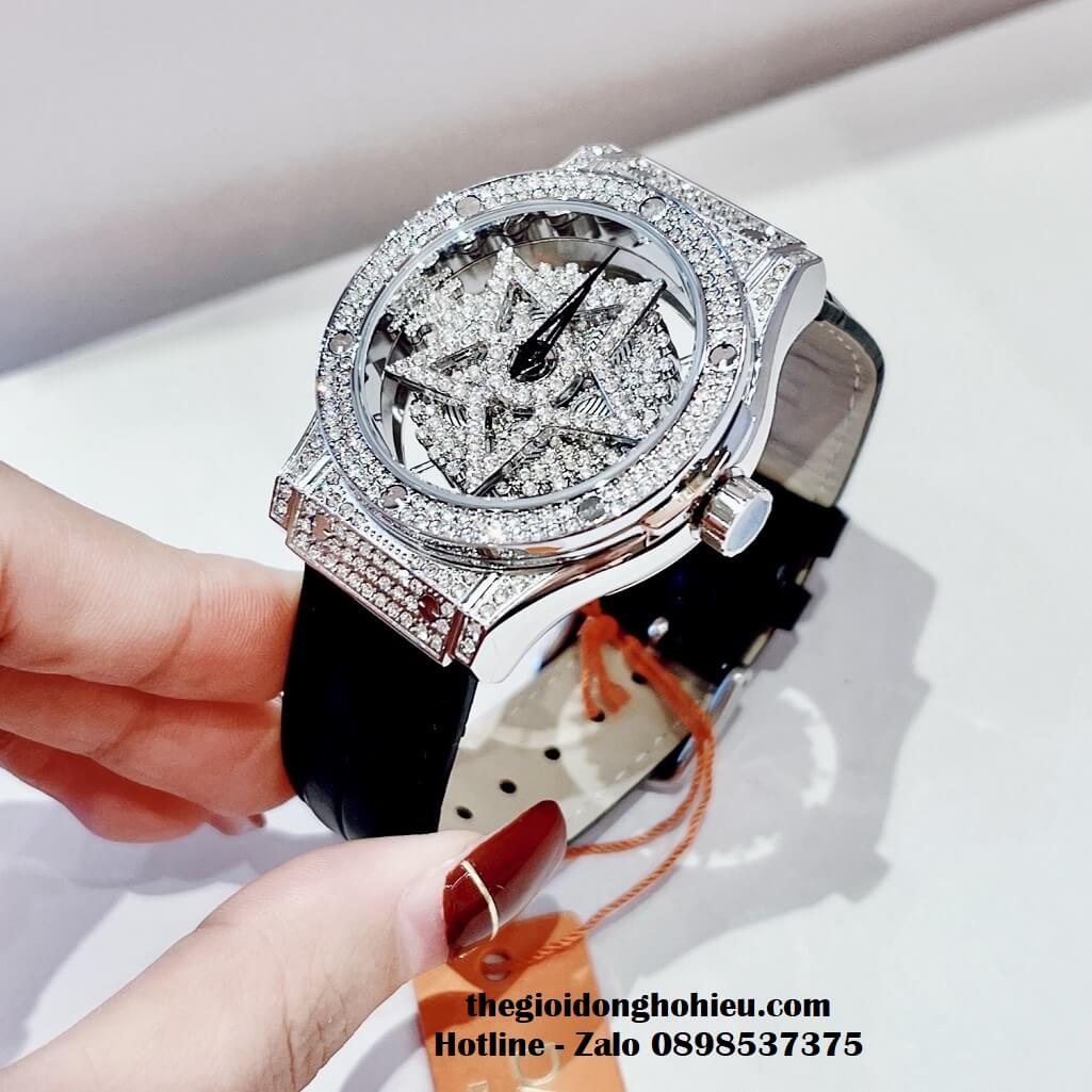 Thiết kế tinh xảo, sử dụng ngôi sao 5 cánh, mặt đồng hồ xoay tạo điểm nhấn cho chiếc đồng hồ thêm sinh động và bắt mắt. Chỉ cần lắc nhẹ là ngôi sao đính đá bên trong sẽ quay như chong chóng