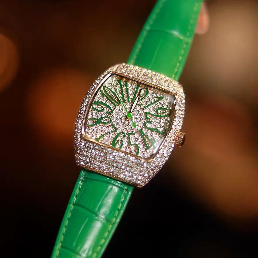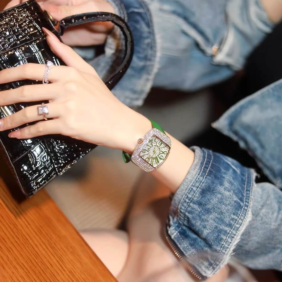 Cọc số màu xanh lá sang trọng, dễ xem giờ. Dây da vân cá sấu