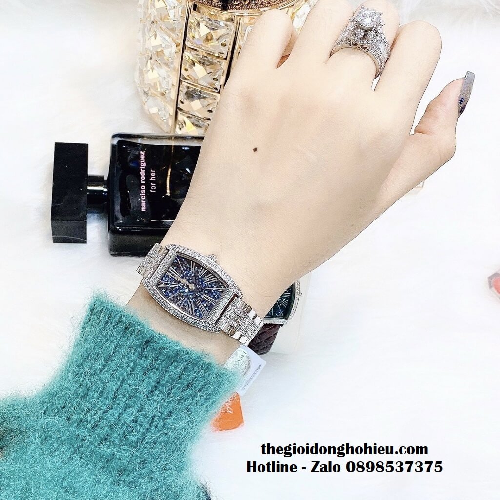 Thiết kế mặt đồng hồ nhỏ xinh, được đính số la mã thay thế các cọc số, rất dễ xem giờ