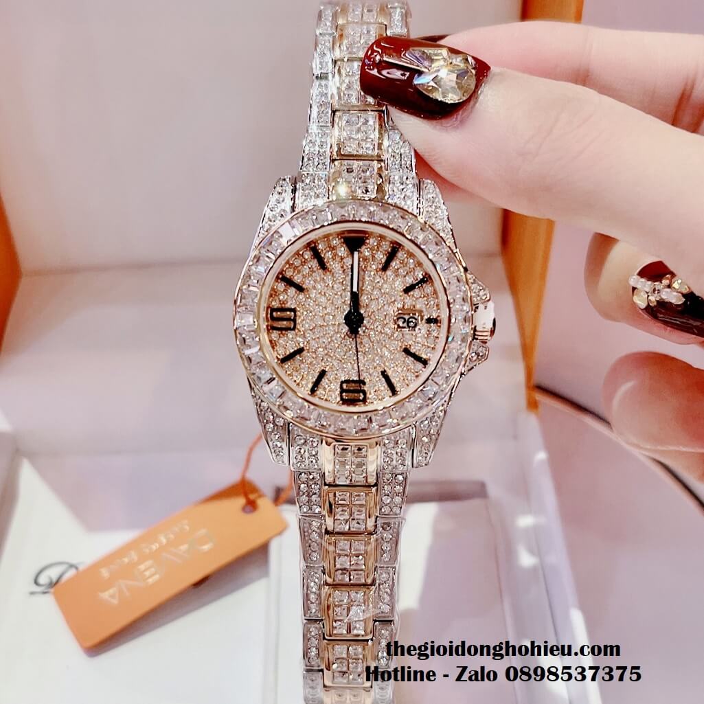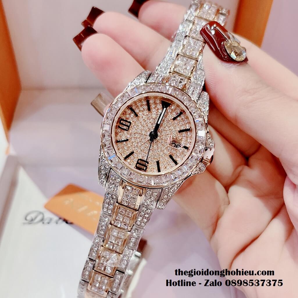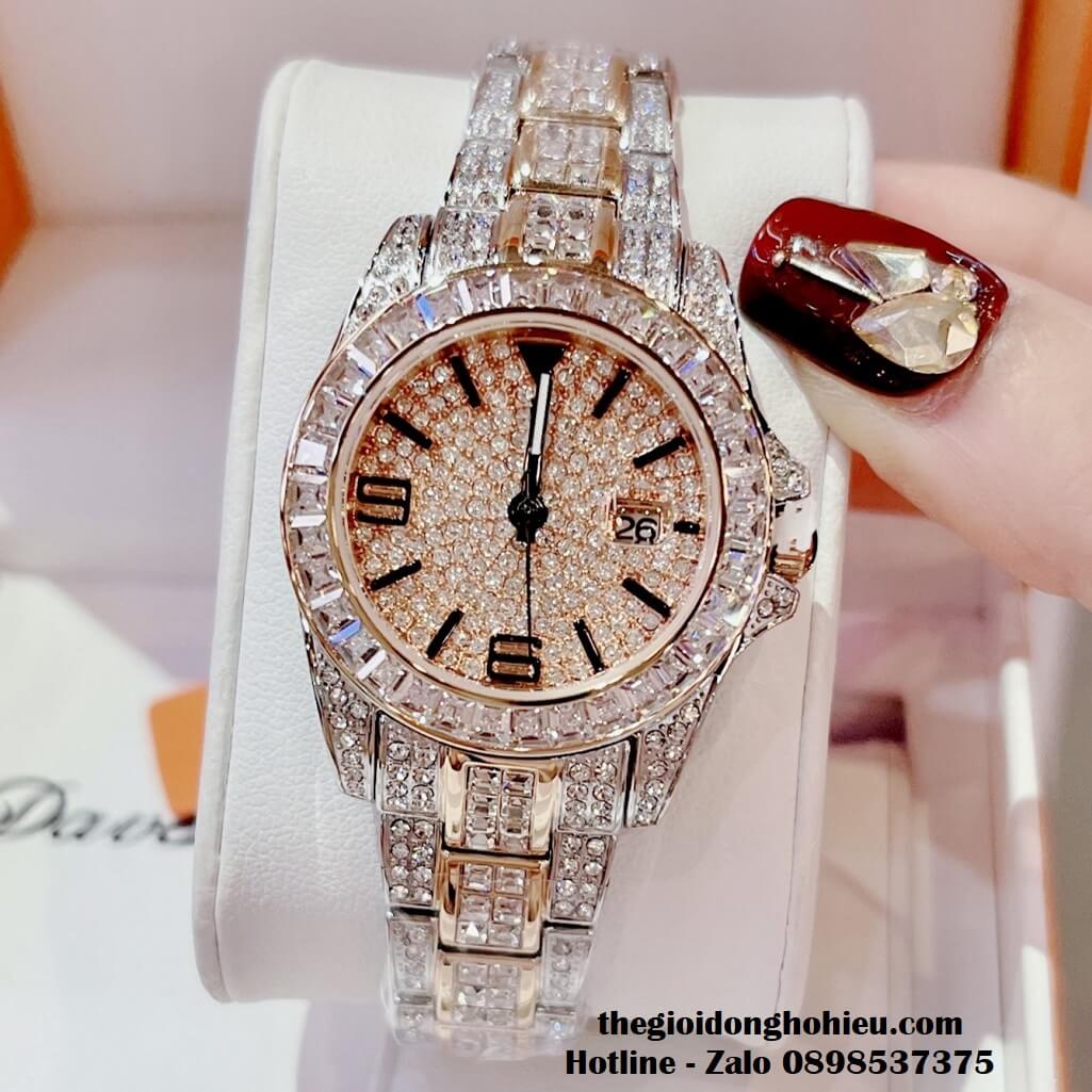 Đồng hồ Davena chính hãng nữ đính đá rose, mặt và dây được đính full đá swarovski sang trọng