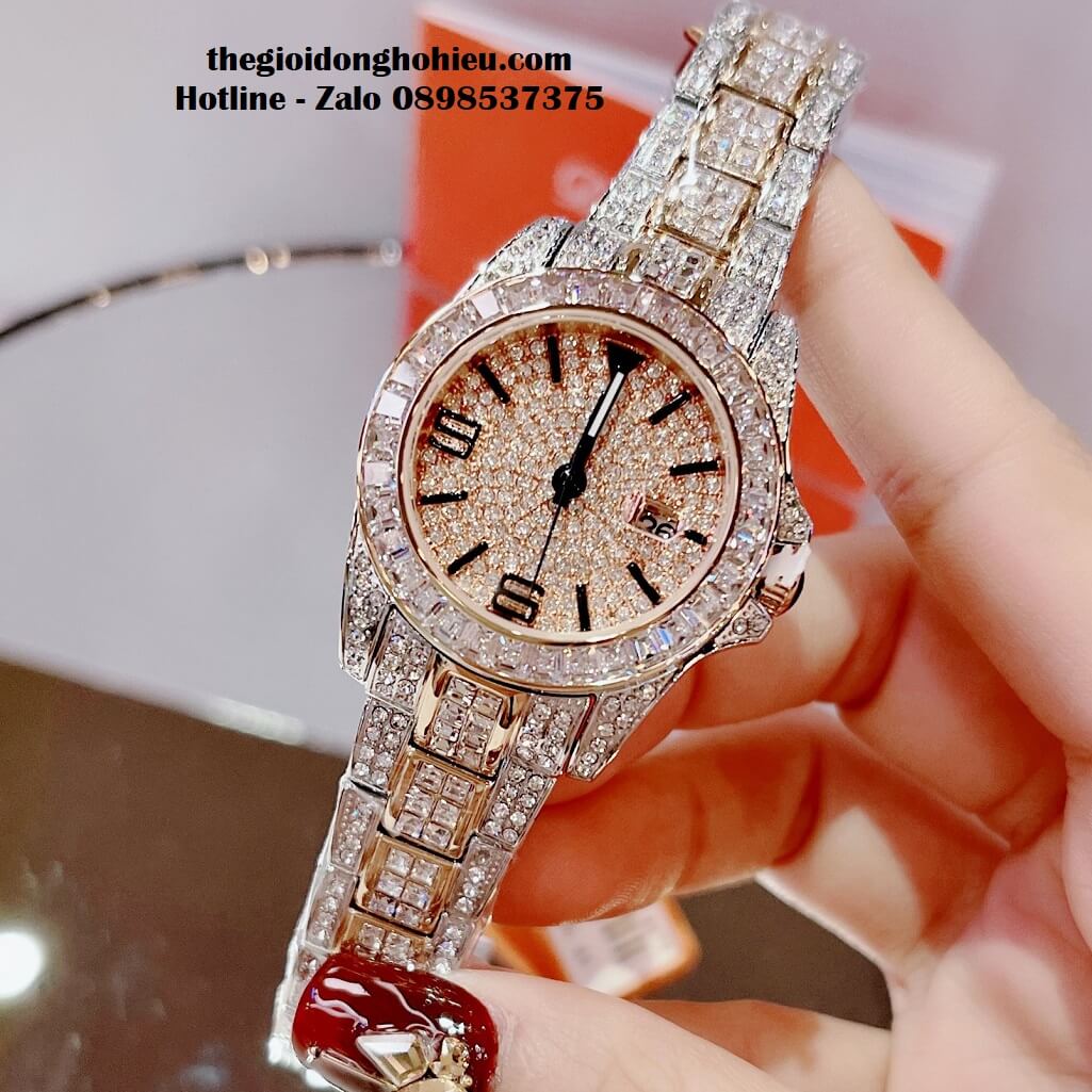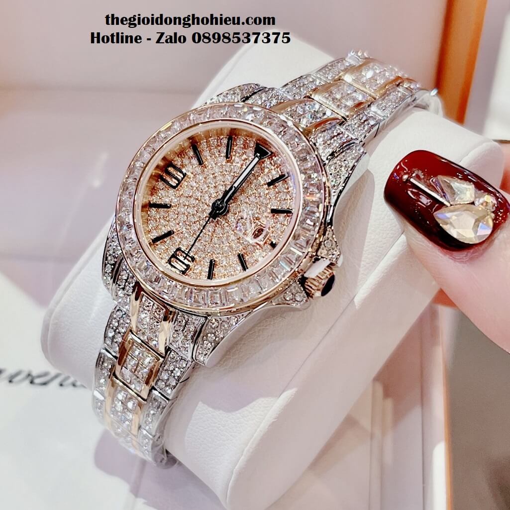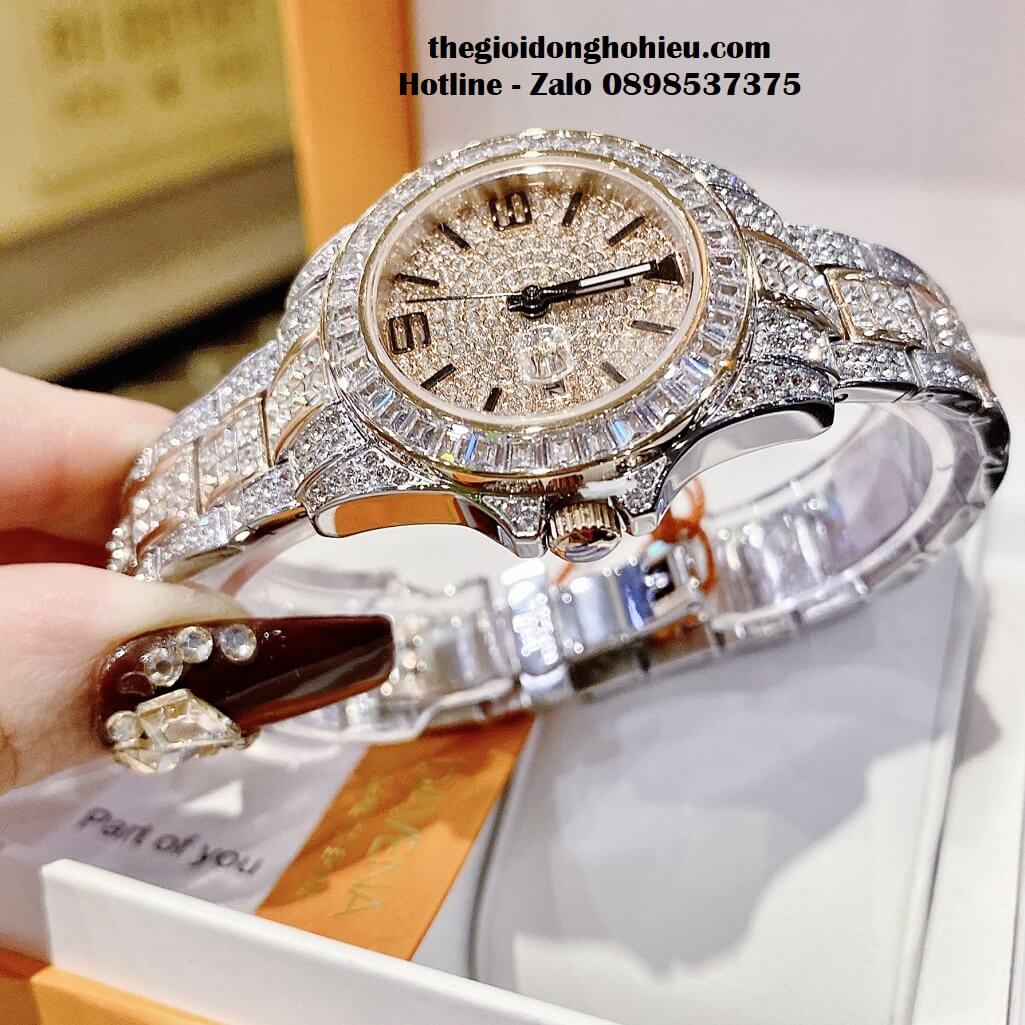Đồng hồ Davena chính hãng nữ đính đá rose, mặt và dây được đính full đá swarovski sang trọng