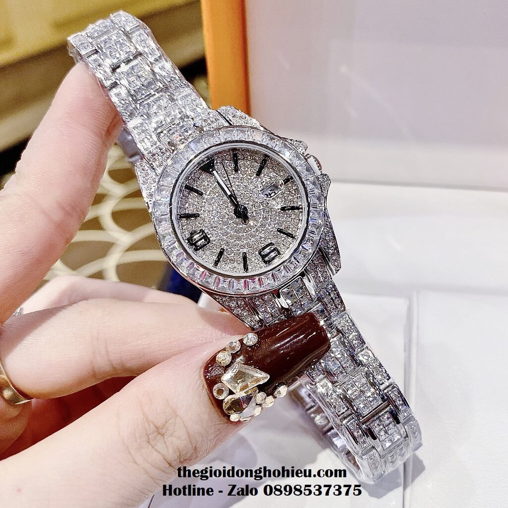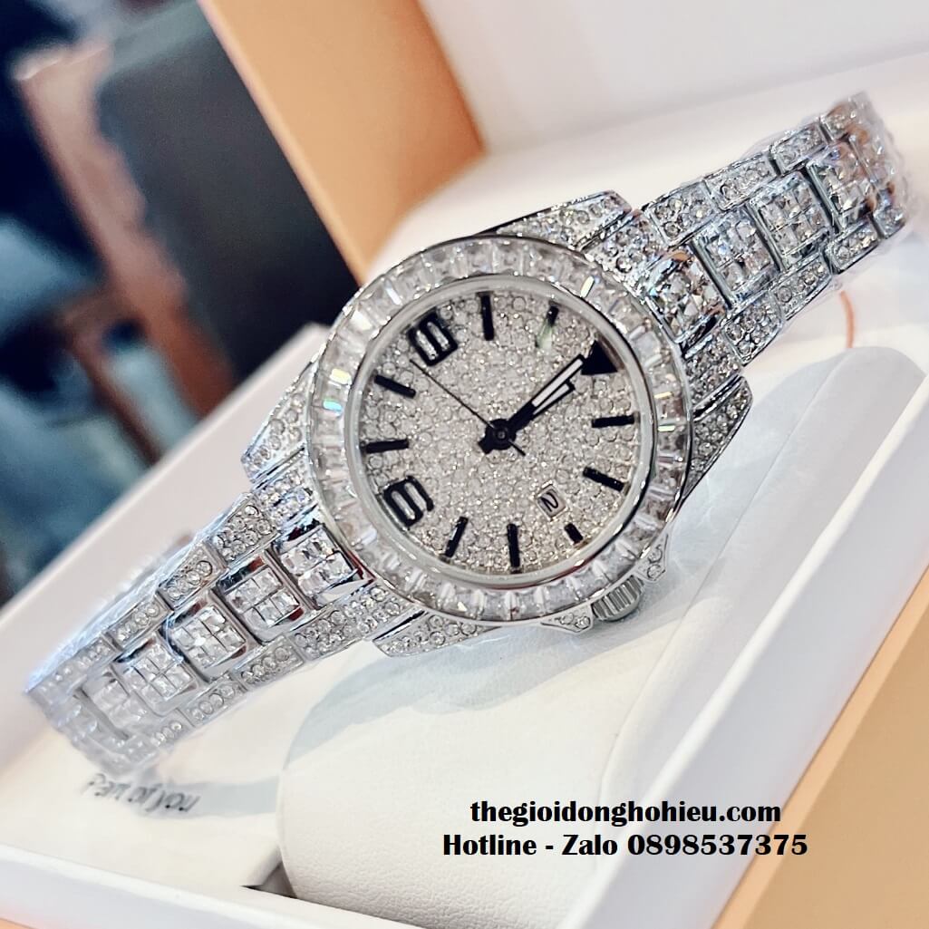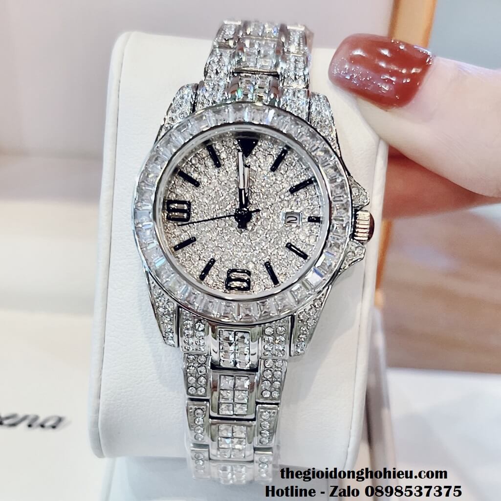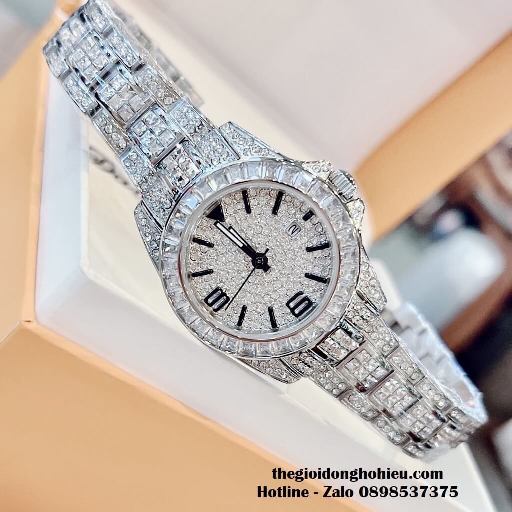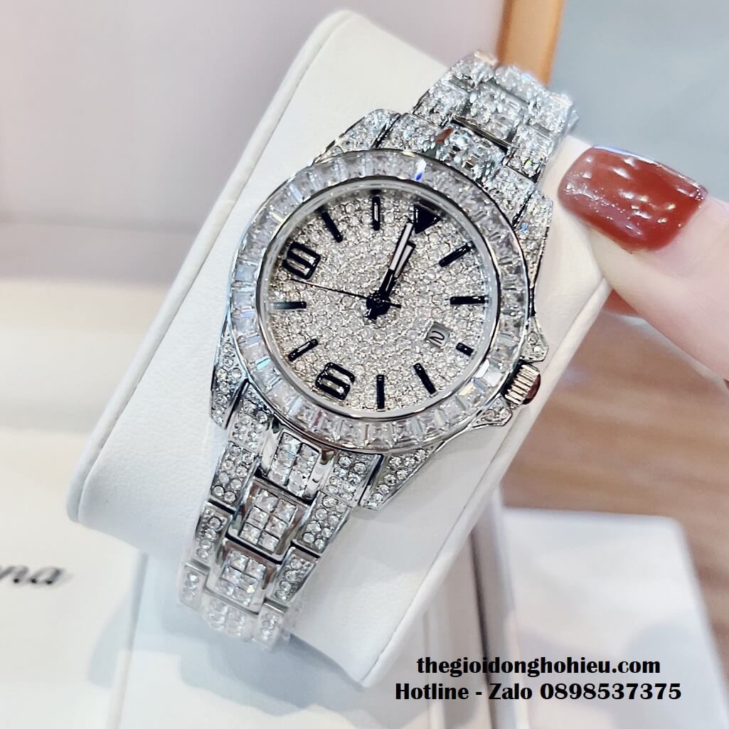 Đồng hồ Davena chính hãng nữ đính đá silver, mặt và dây được đính full đá swarovski sang trọng