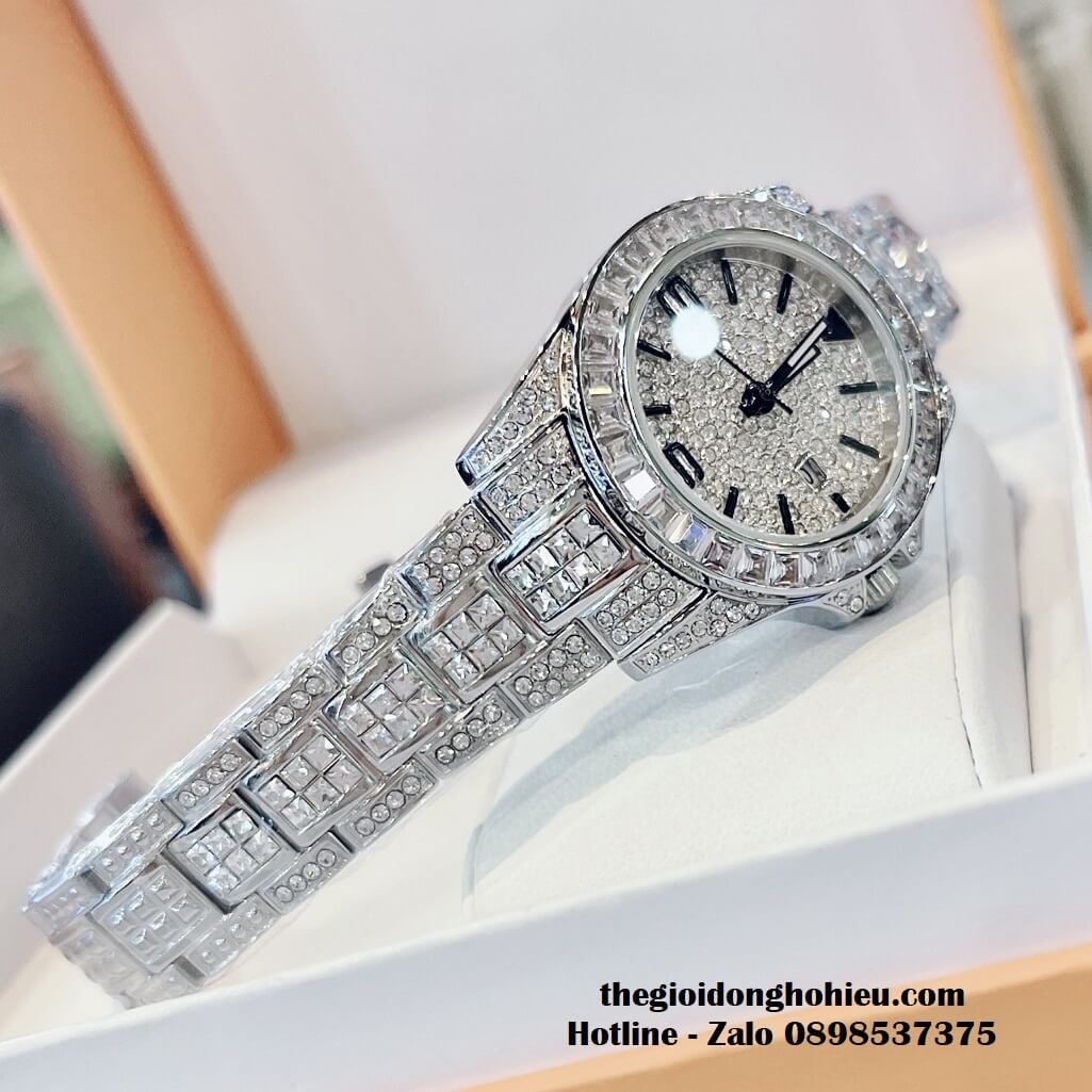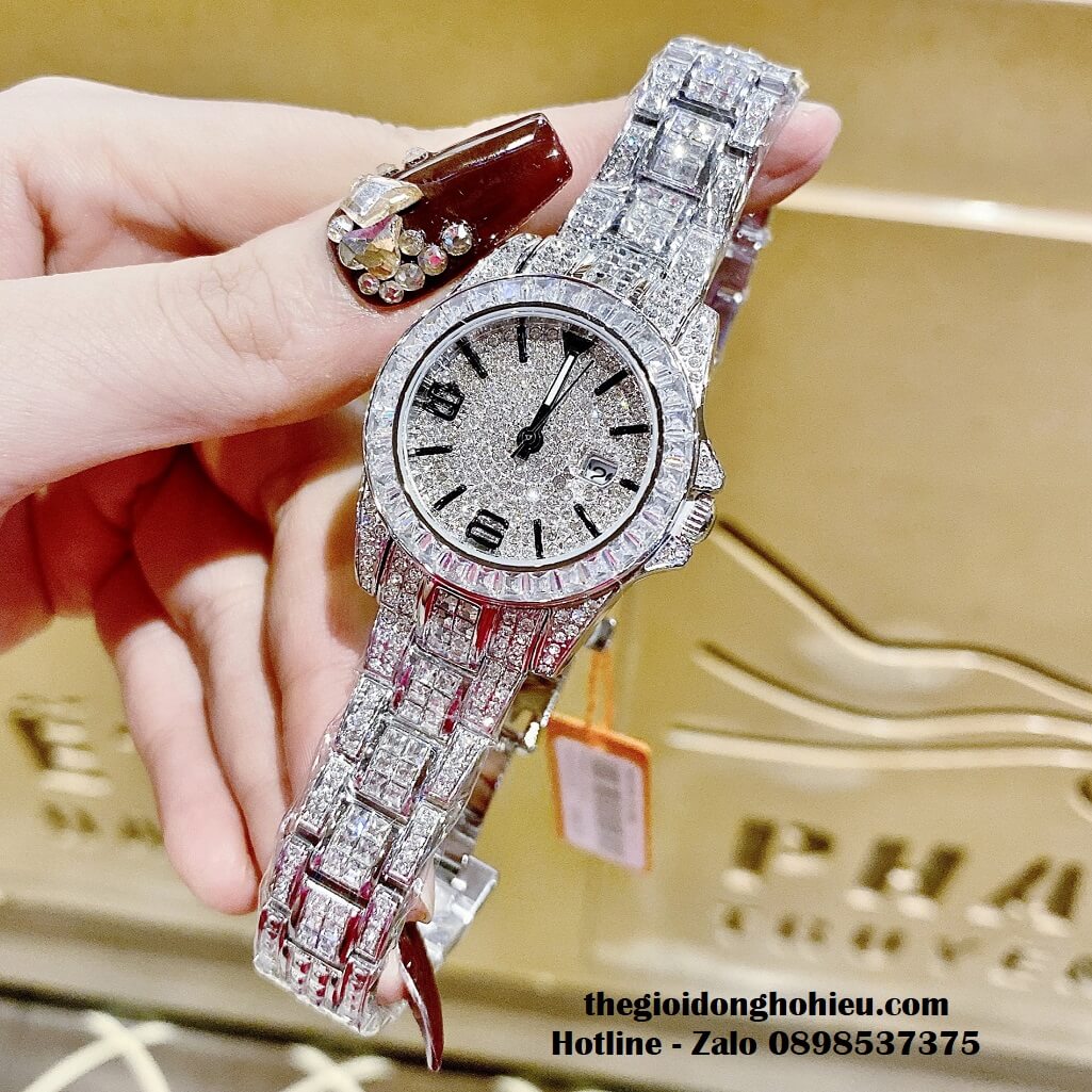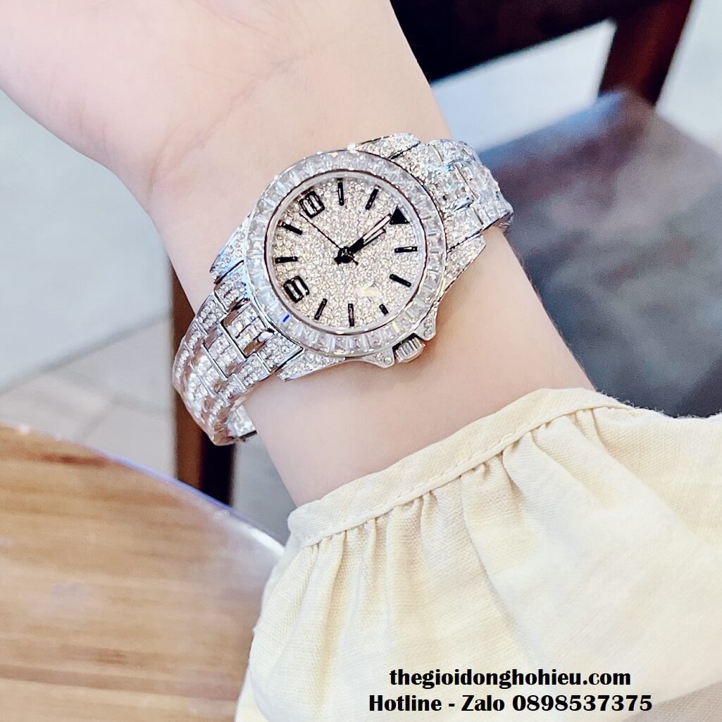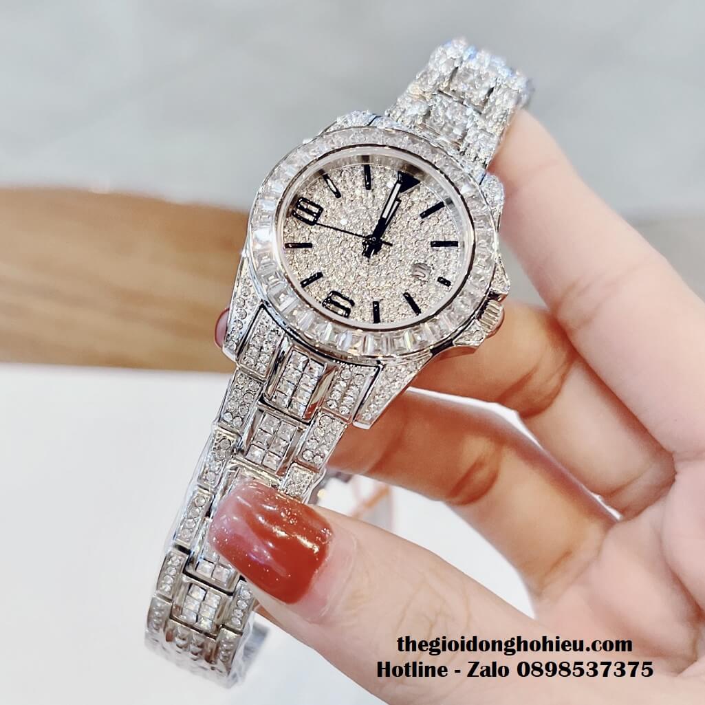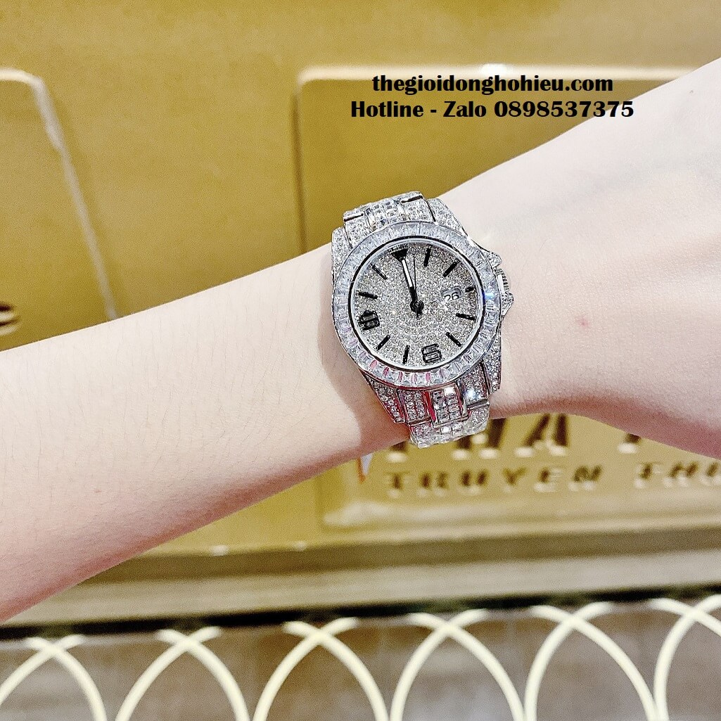 Đồng hồ Davena chính hãng nữ đính đá silver, mặt và dây được đính full đá swarovski sang trọng