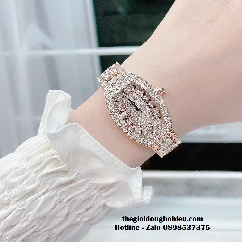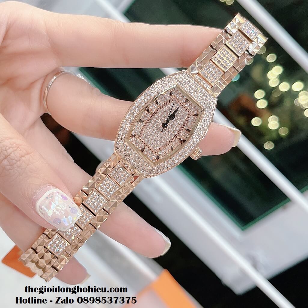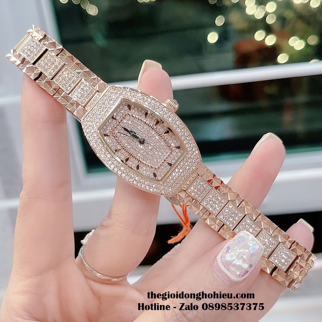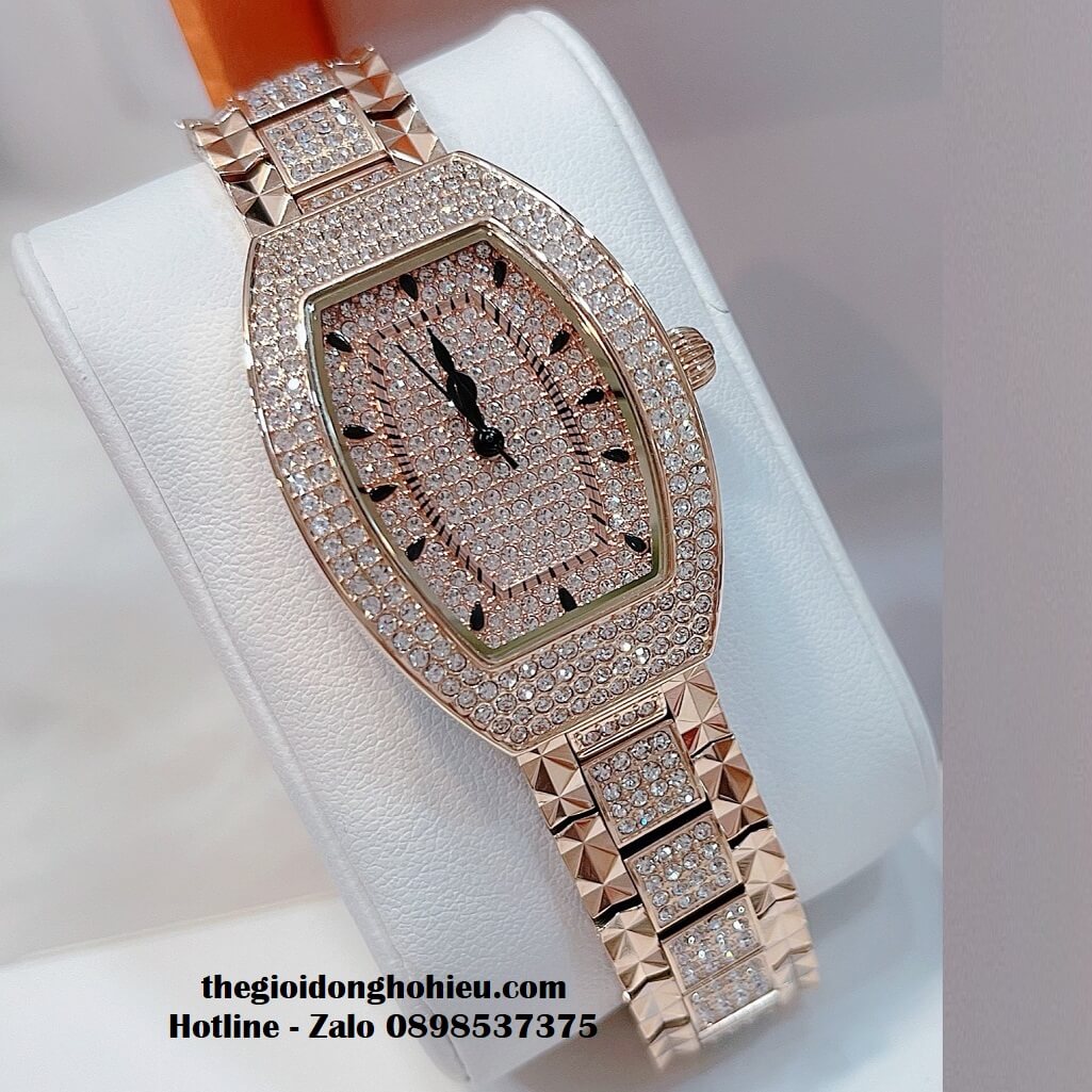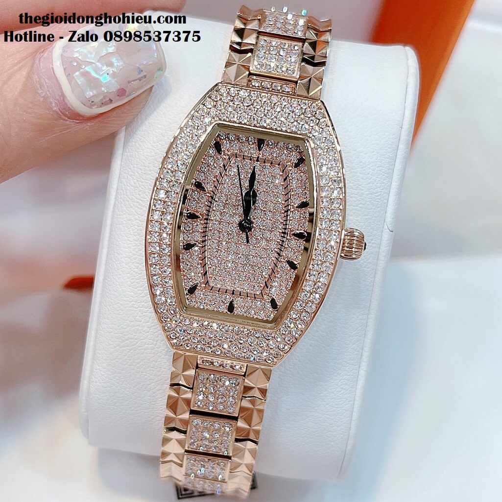 Đồng hồ Davena nữ chính hãng mặt oval đính đá Swarovski nổi bật, vỏ màu vàng hồng