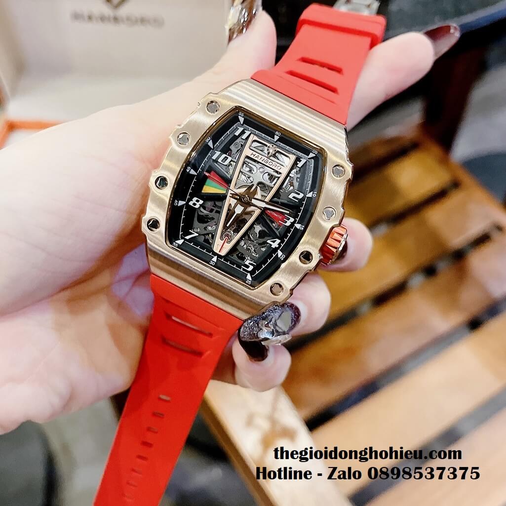- Đồng Hồ Hanboro Nam Tự Động Dây Silicone Đỏ Vỏ Rose 40x48mm 999