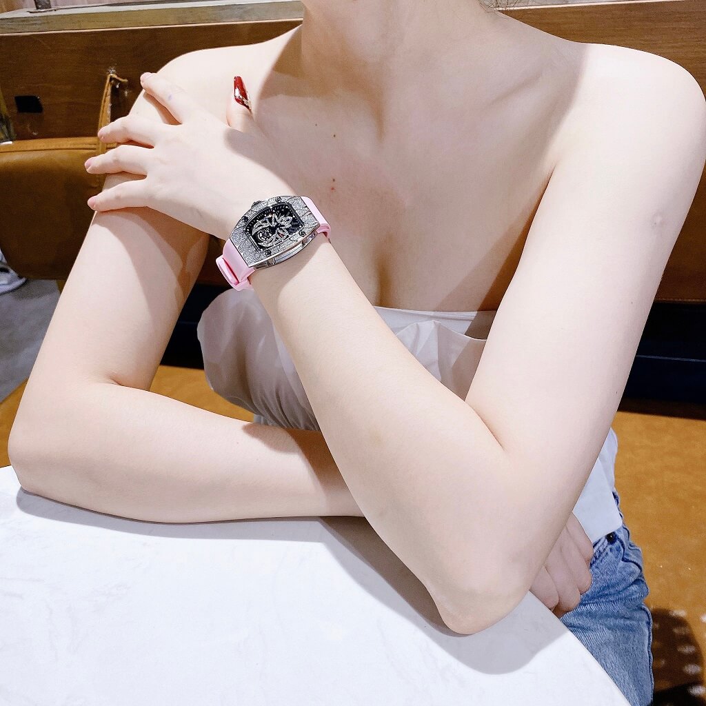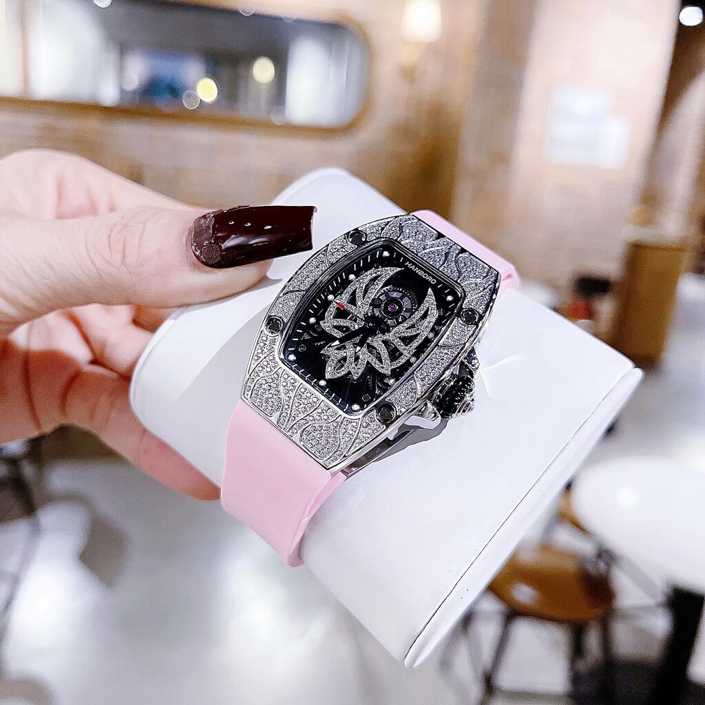 ➖ Hanboro by Huboler chính hãng dành cho nữ mặt dáng chữ nhật, toàn bộ mặt đồng hồ được đính đá Swarovski sang trọng