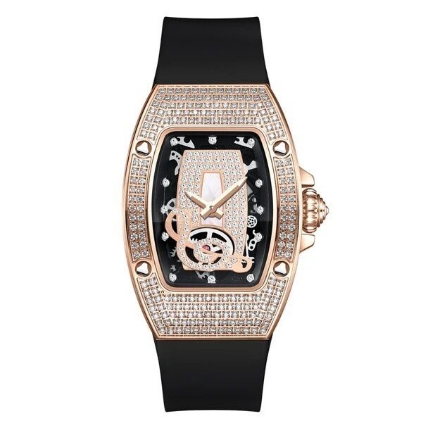 ➖ Hanboro by Huboler chính hãng dành cho nữ mặt dáng chữ nhật, toàn bộ mặt đồng hồ được đính đá Swarovski sang trọng