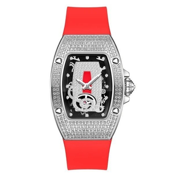 Hình ảnh Đồng Hồ Hanboro Nữ HBR 8003 Dây Cao Su Đỏ Silver 31x44mm Chính Hãng