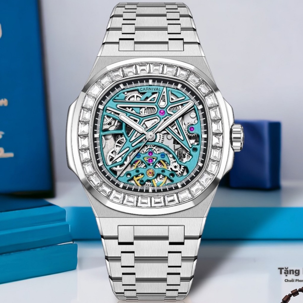Hình Ảnh Đồng Hồ Nam Carnival 8118G2 Silver 40mm Đính Đá Mặt Xanh chính hãng