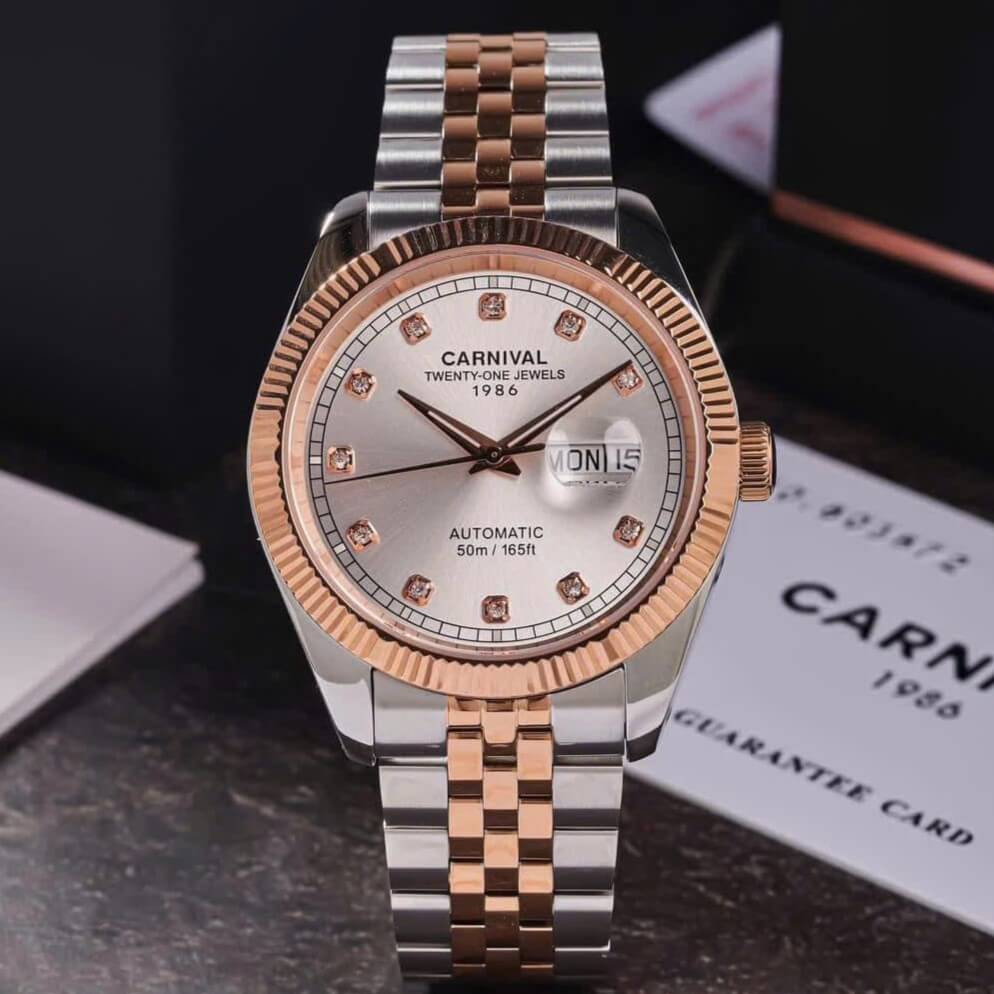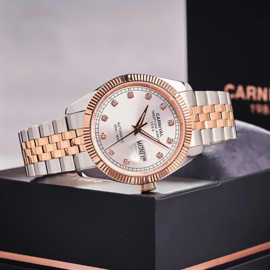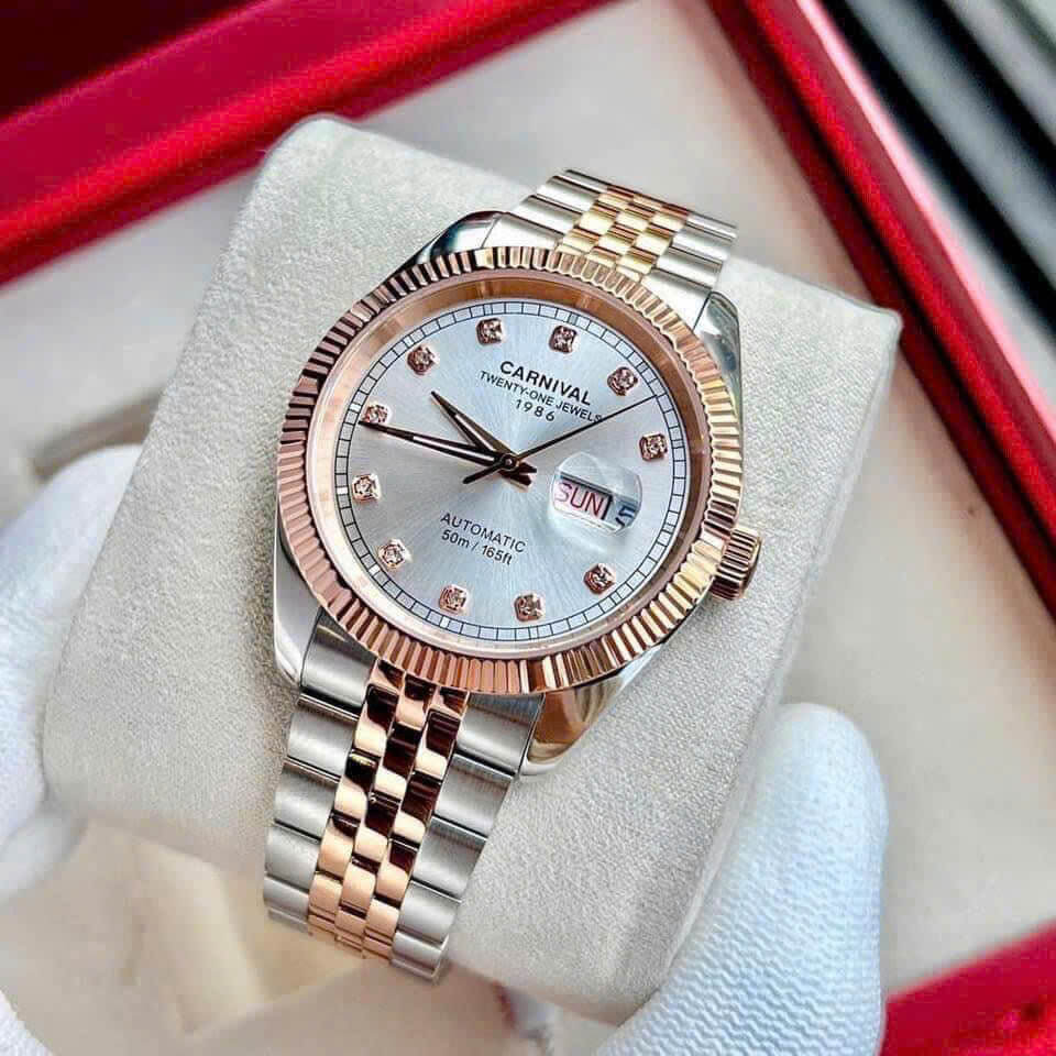 Hình Ảnh Đồng Hồ Nam Carnival 8131G Dây Thép Vỏ Demi Rose White 41mm Chính Hãng