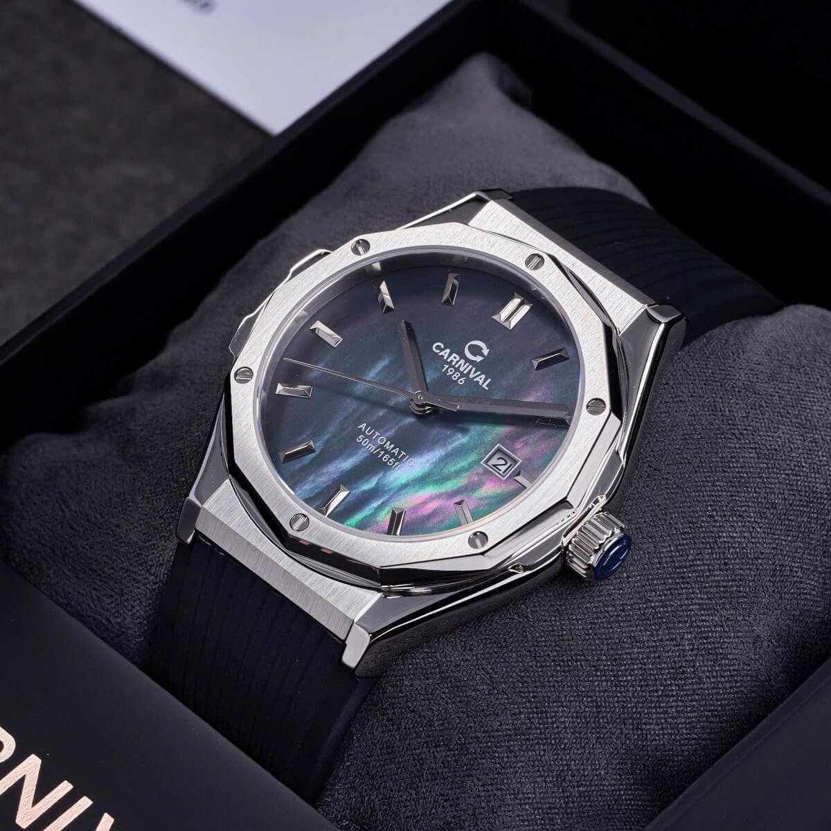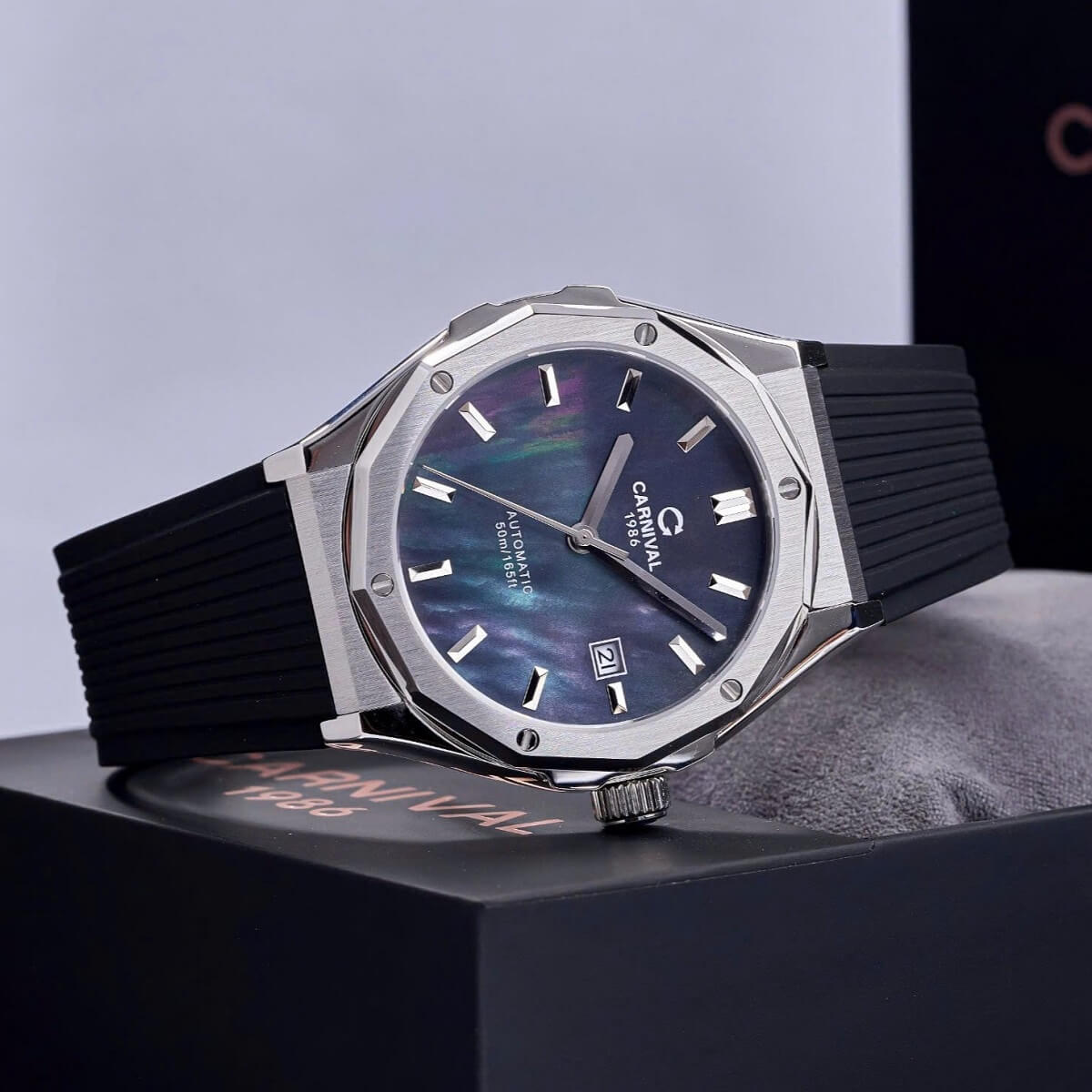 Mỗi chiếc đồng hồ là một phần cá tính. Với Carnival 8168G mặt xà cừ, vỏ bạc, dây cao su đen, bạn không chỉ sở hữu thời gian – bạn sở hữu phong cách sống.