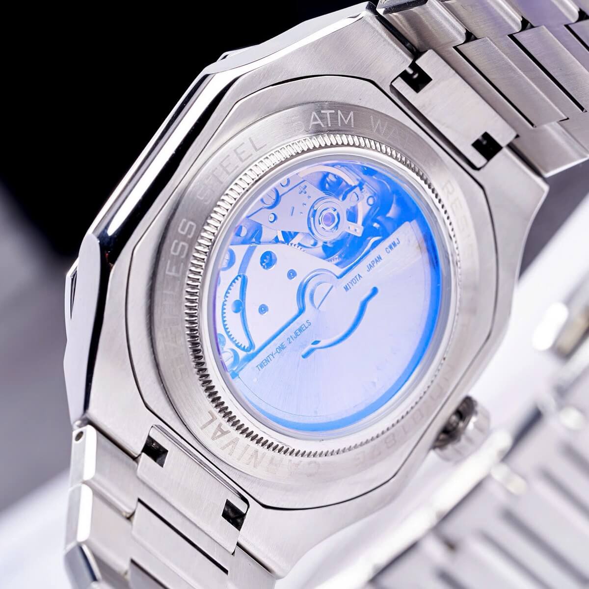 Được trang bị bộ máy cơ tự động chất lượng, Carnival 8187G không cần dùng pin, hoạt động nhờ chuyển động của cổ tay người đeo. Đây là điểm cộng lớn cho những ai yêu thích đồng hồ cơ và sự ổn định, bền bỉ theo năm tháng.