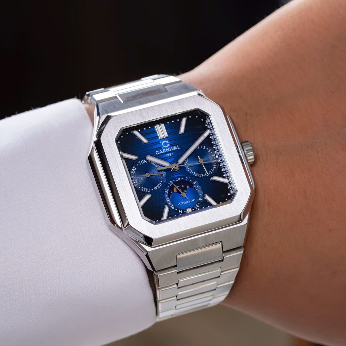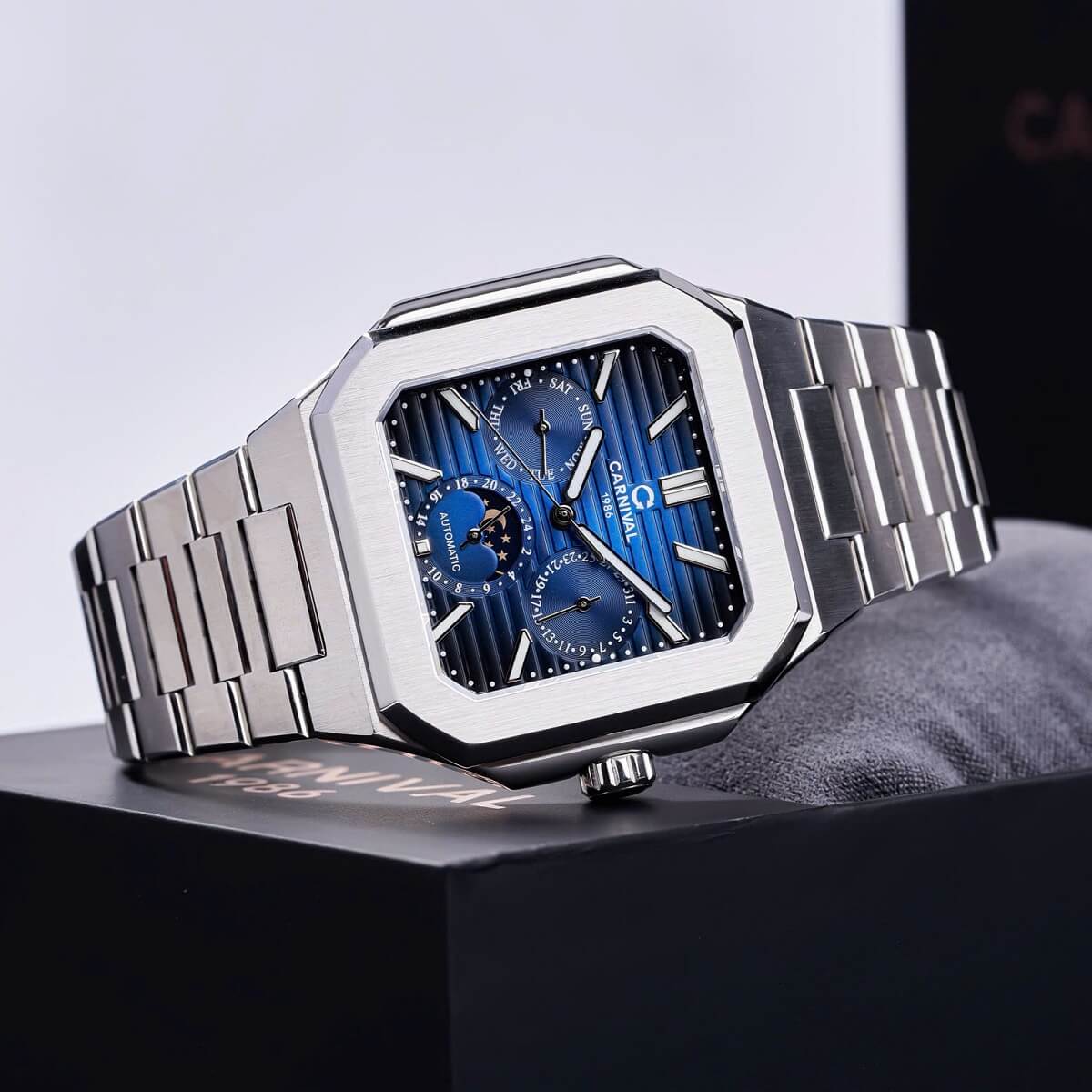 Khẳng định đẳng cấp và bản lĩnh phái mạnh với Carnival 8187G mặt xanh dây kim loại bạc (silver) – mẫu đồng hồ cơ tự động 6 kim cao cấp được thiết kế dành riêng cho quý ông hiện đại, yêu thích sự mạnh mẽ, tinh tế và đòi hỏi tính năng vượt trội.