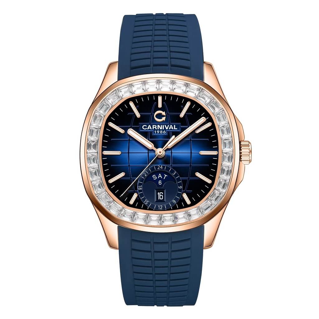 Hình Ảnh Đồng Hồ Nam Carnival Aquanus 8113G2 Dây Silicone Blue Rose Gold 40mm chính hãng
