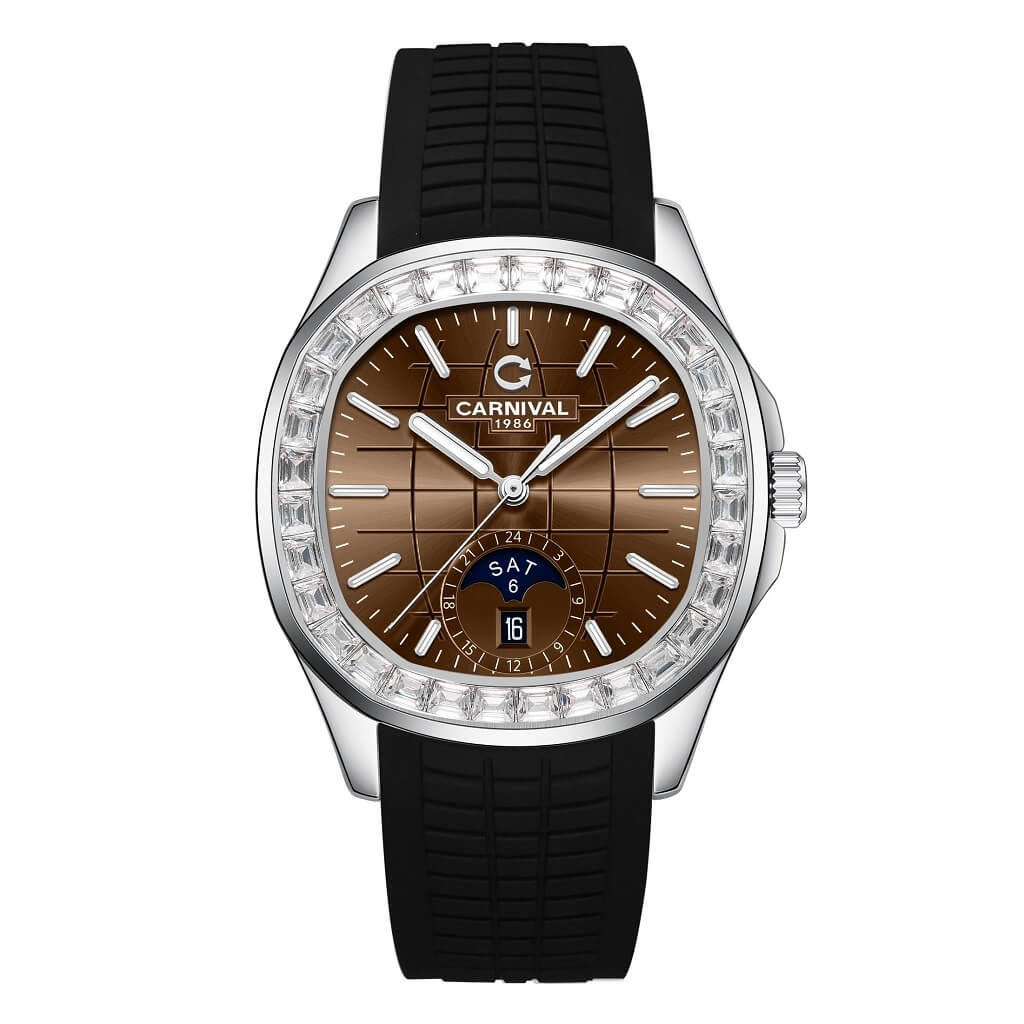 Hình Ảnh Đồng Hồ Nam Carnival Aquanus 8113G2 Dây Silicone Đen Brown Silver 40mm chính hãng