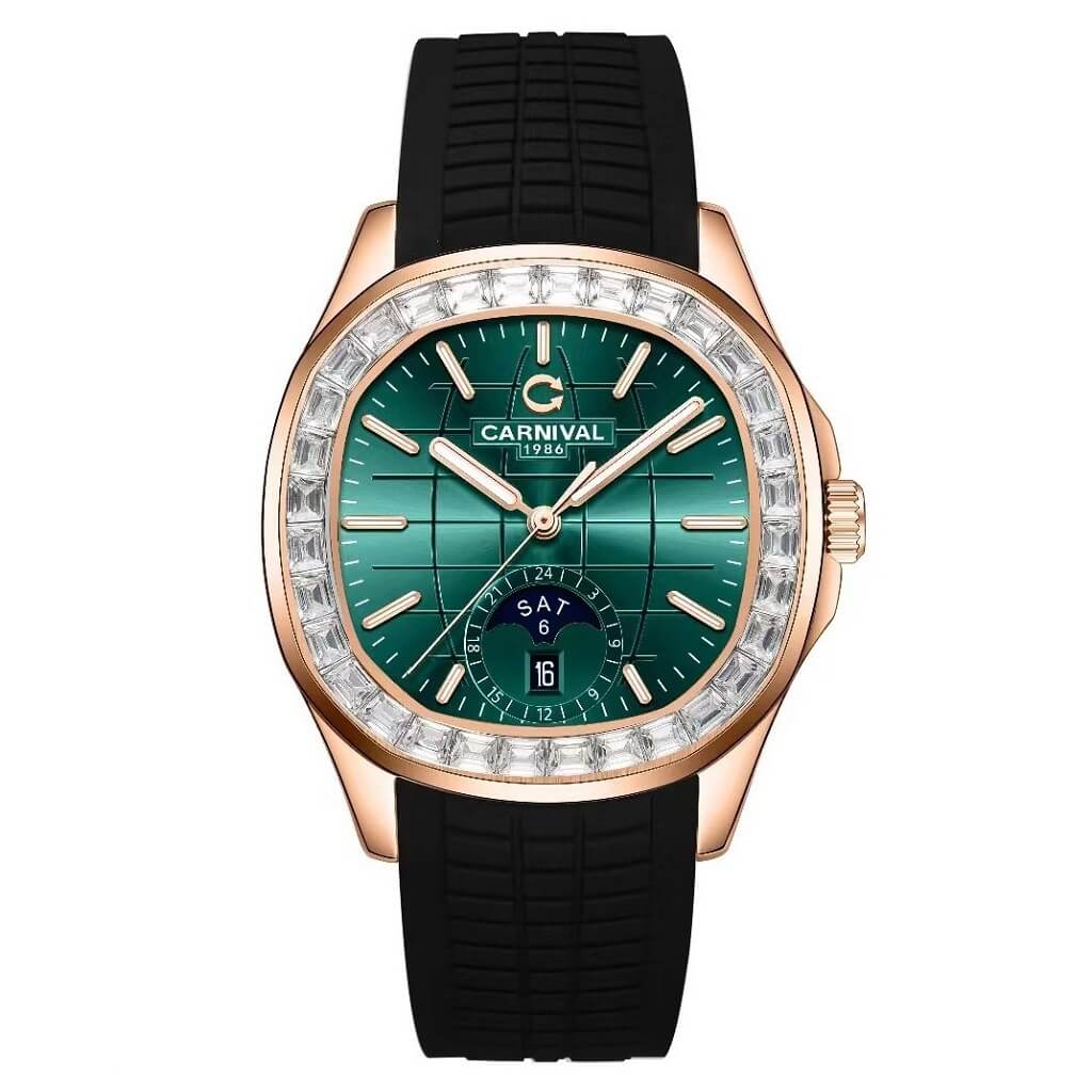 Hình Ảnh Đồng Hồ Nam Carnival Aquanus 8113G2 Dây Silicone Đen Green Rose Gold 40mm chính hãng