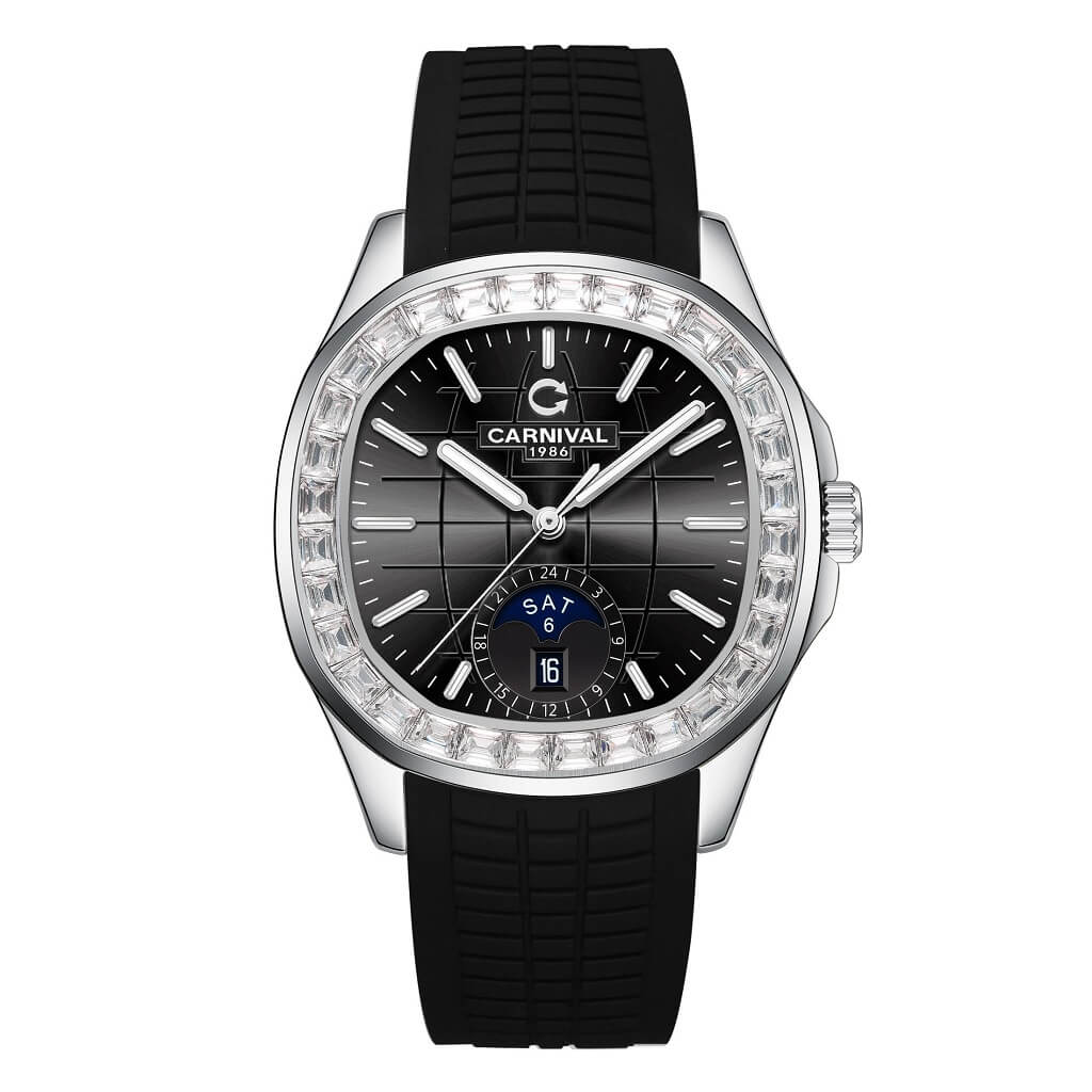 Hình Ảnh Đồng Hồ Nam Carnival Aquanus 8113G2 Dây Silicone Đen Silver 40mm chính hãng