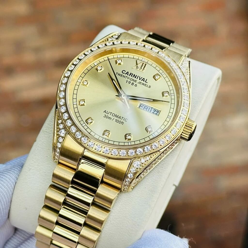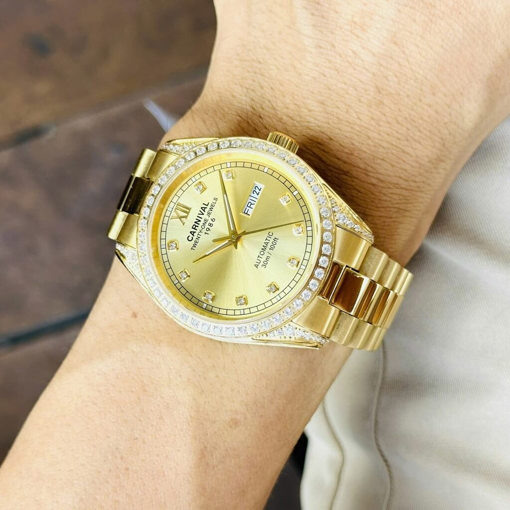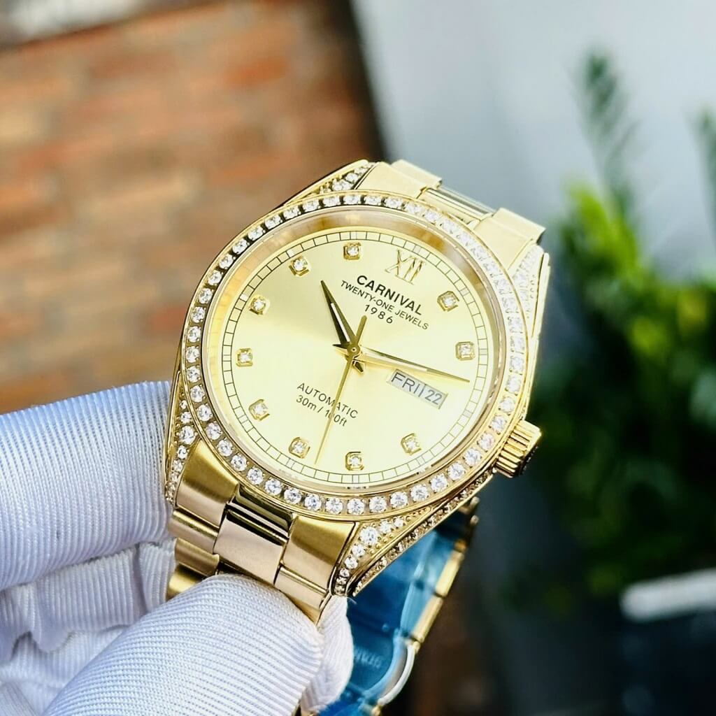 Hình Ảnh Đồng Hồ Nam Carnival 8907G Dây Thép Vỏ Gold 40mm chính hãng