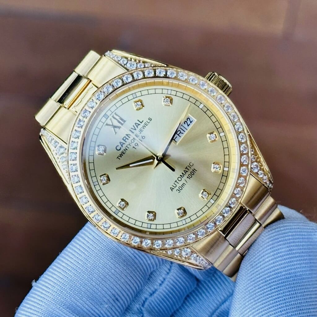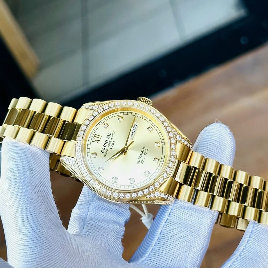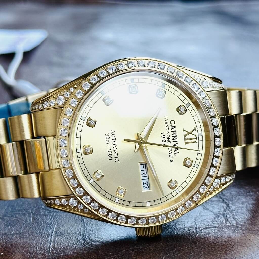 Hình Ảnh Đồng Hồ Nam Carnival 8907G Dây Thép Vỏ Gold 40mm chính hãng