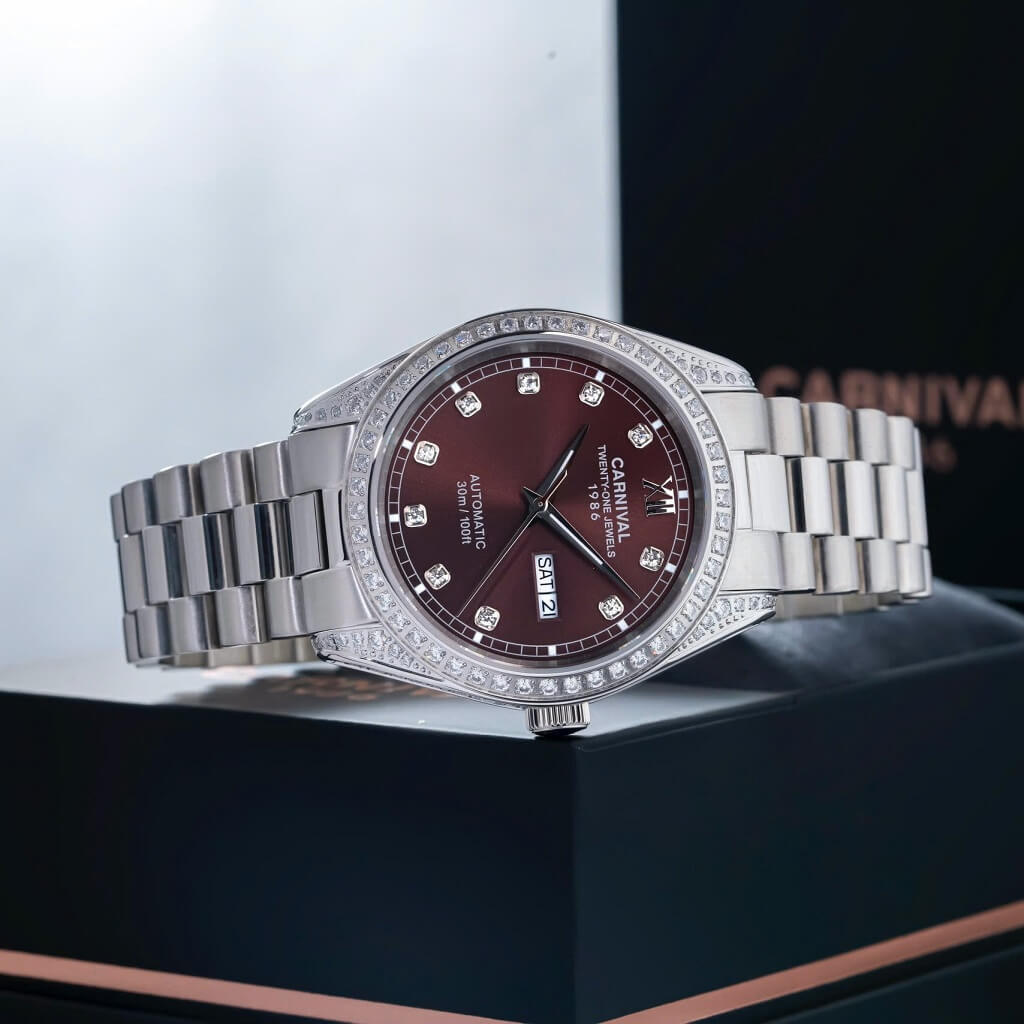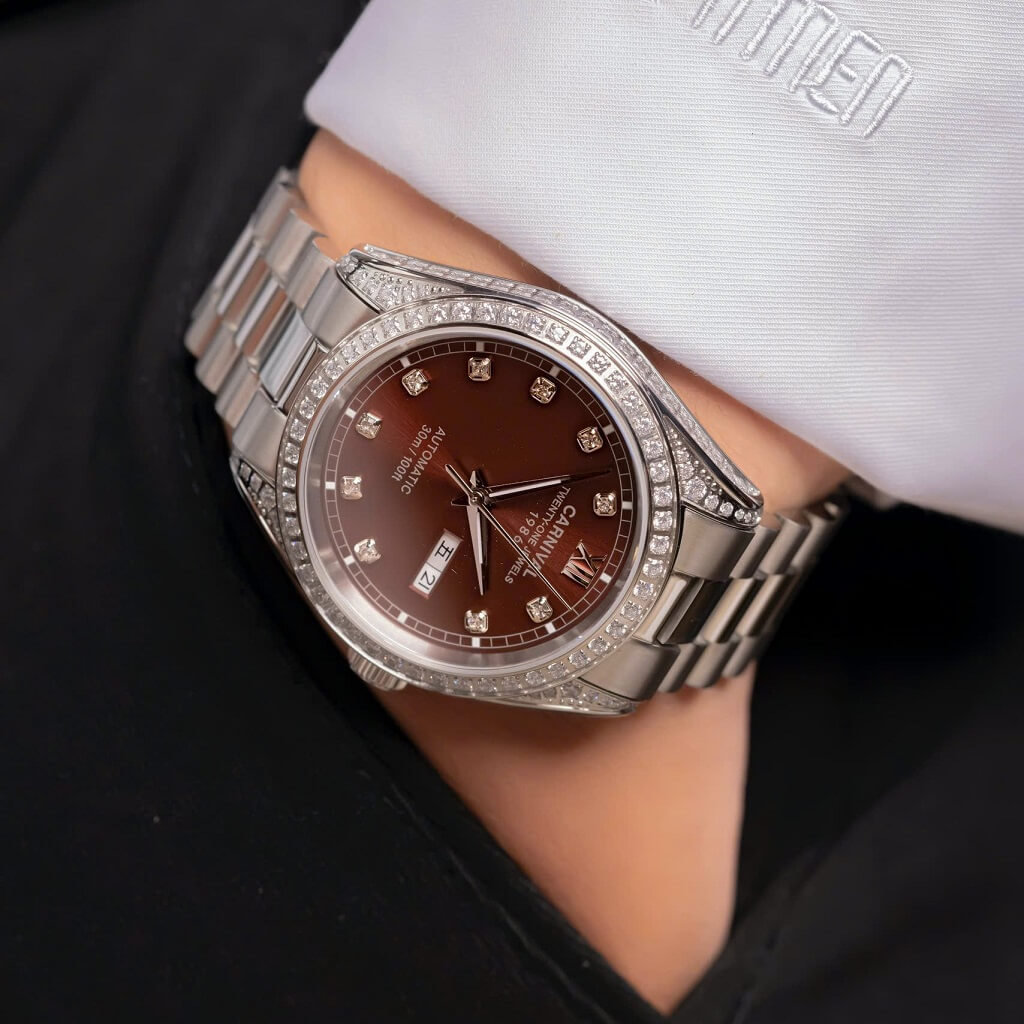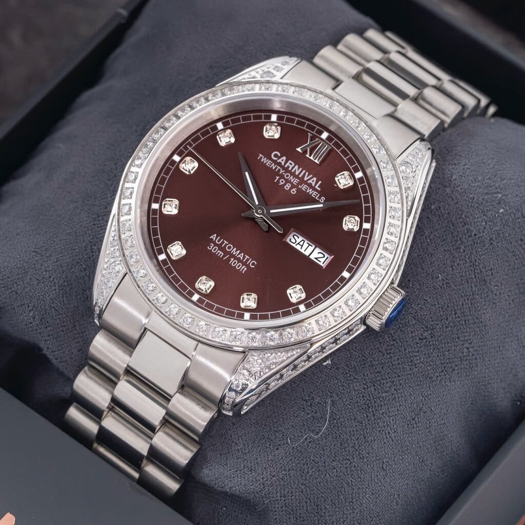 Hình Ảnh Đồng Hồ Nam Carnival 8907G Dây Thép Vỏ Silver Brown 40mm chính hãng
