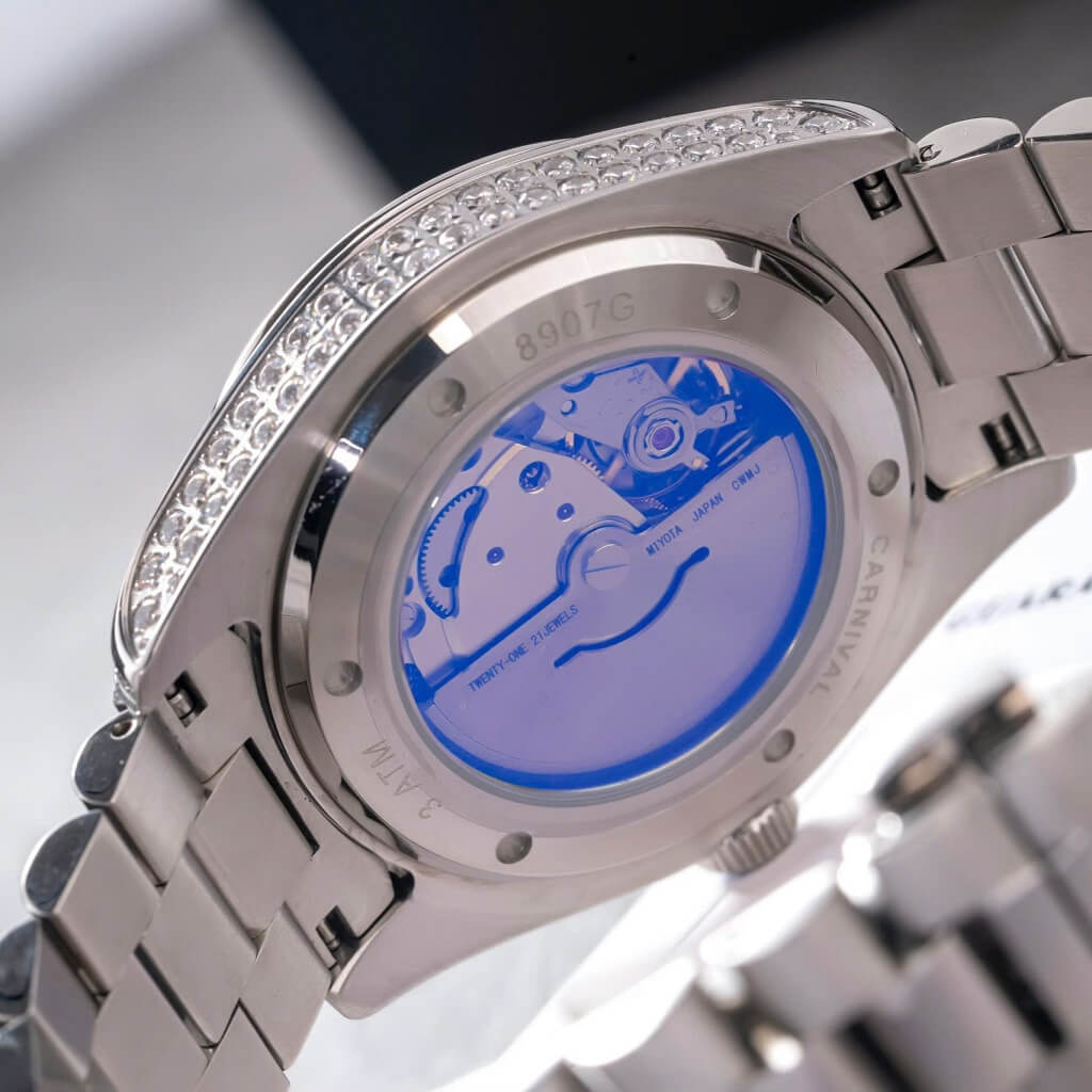 - Chất liệu vỏ: Thép không gỉ 316L, đá swarovski