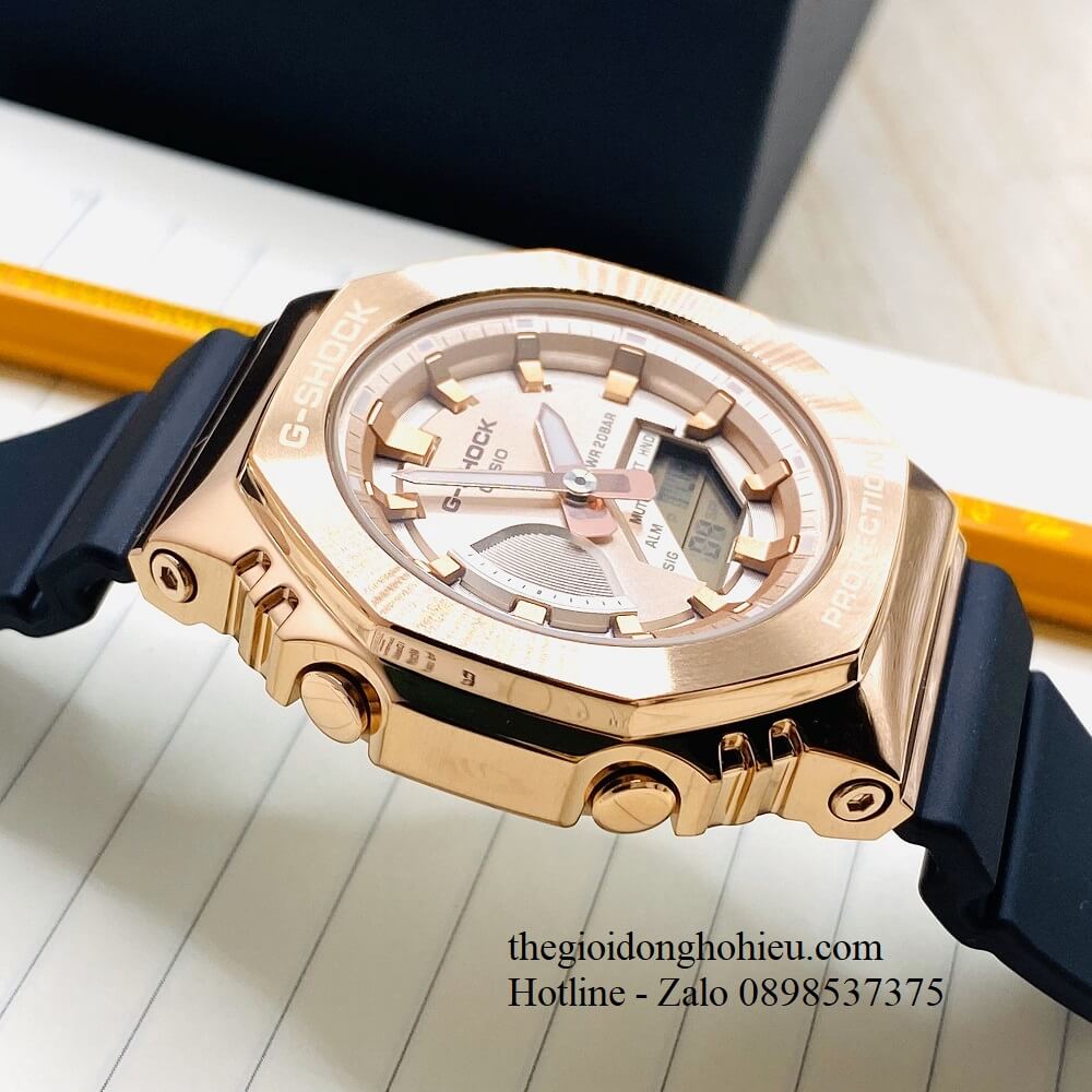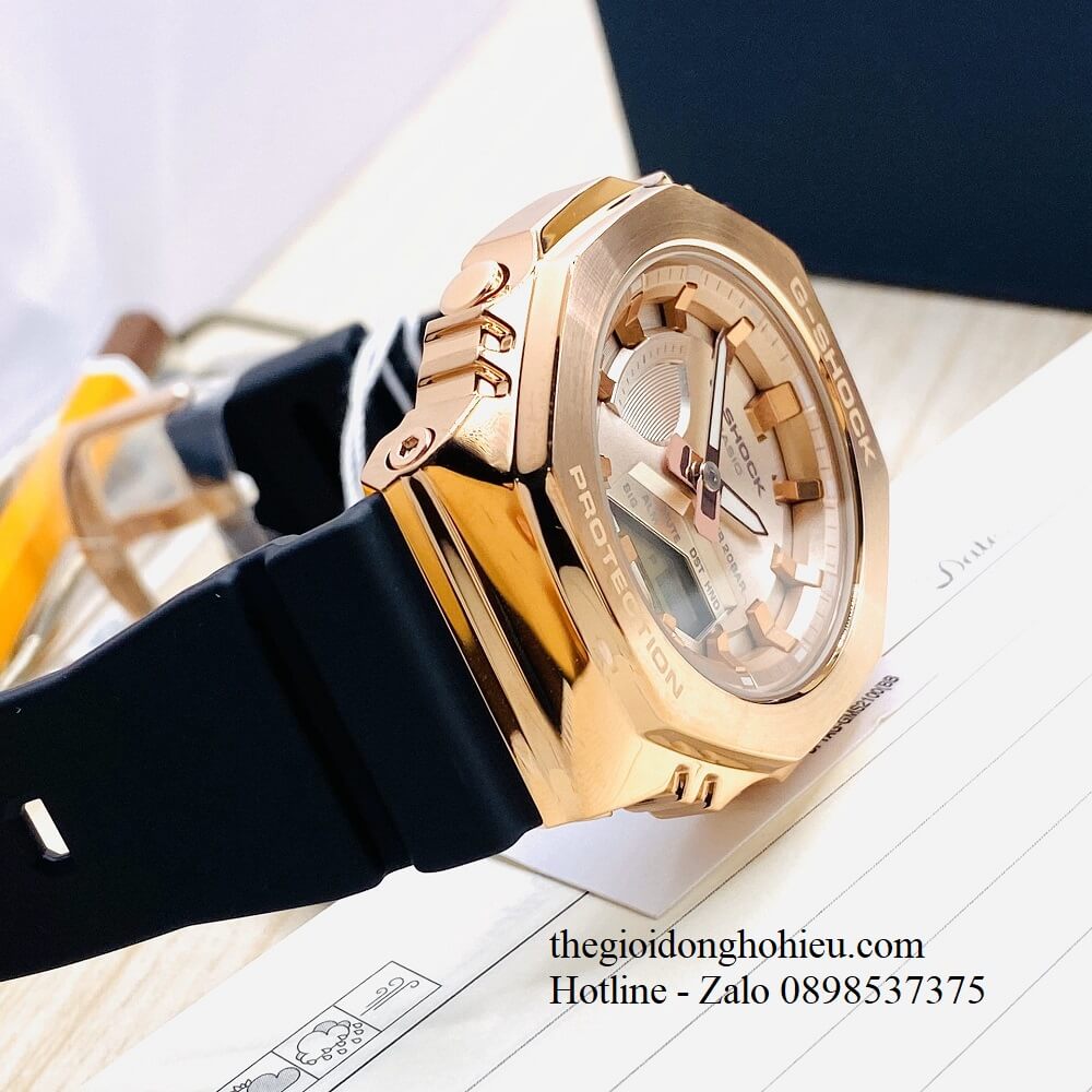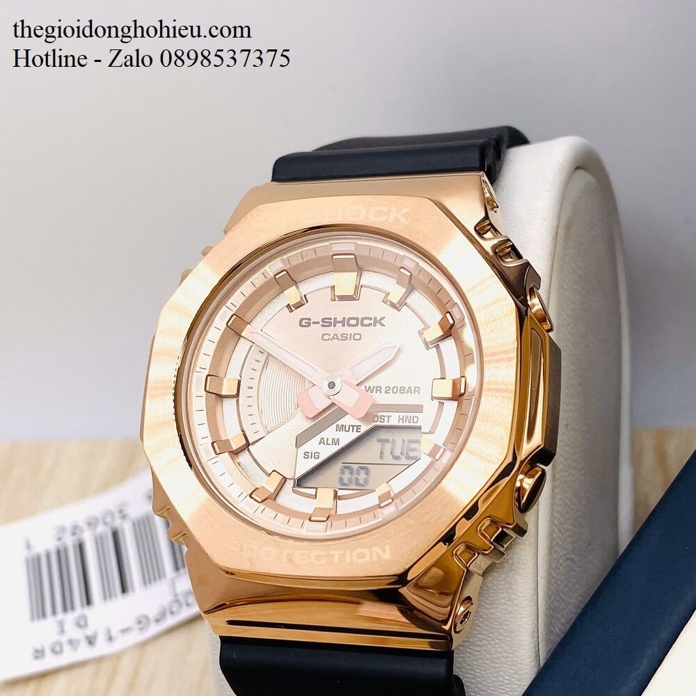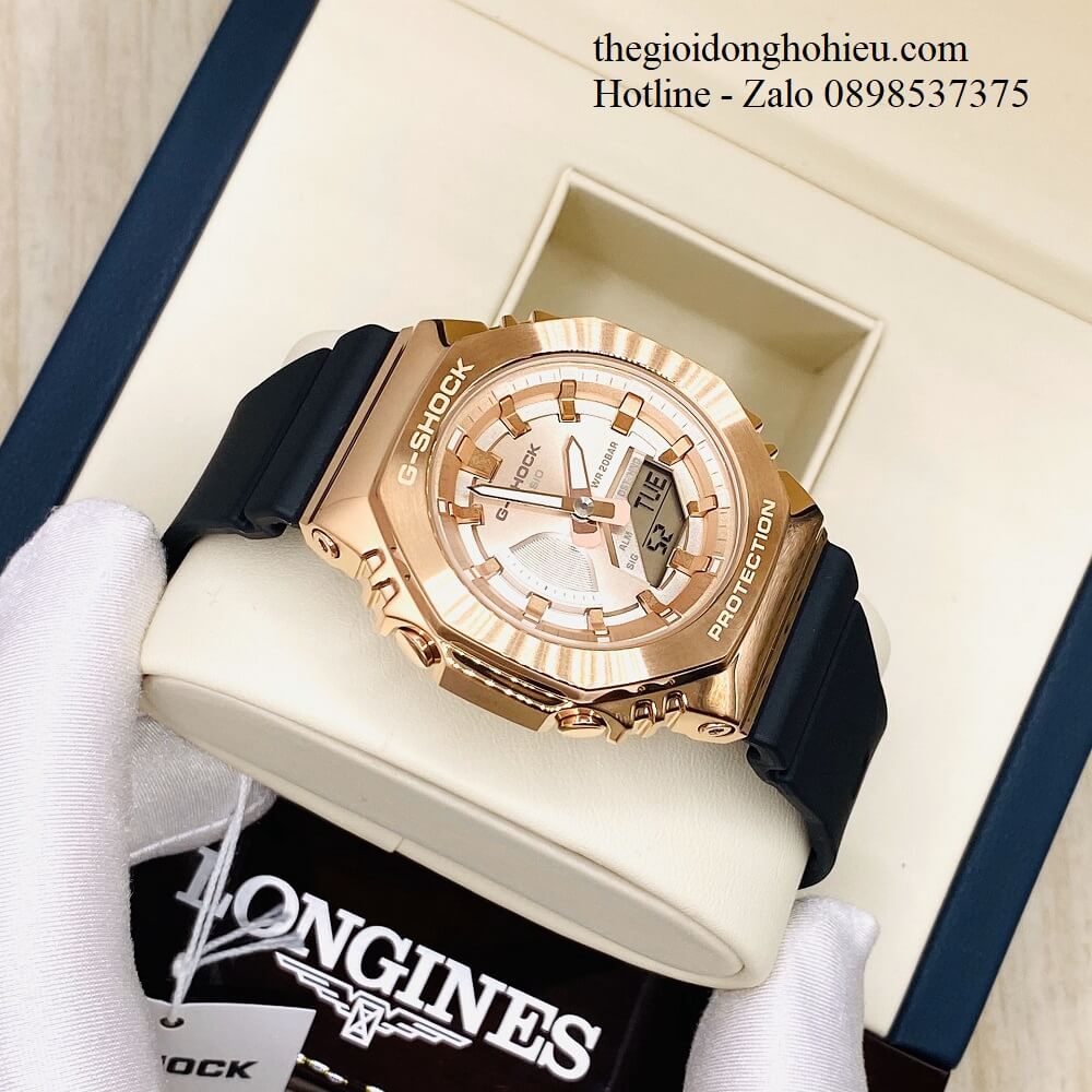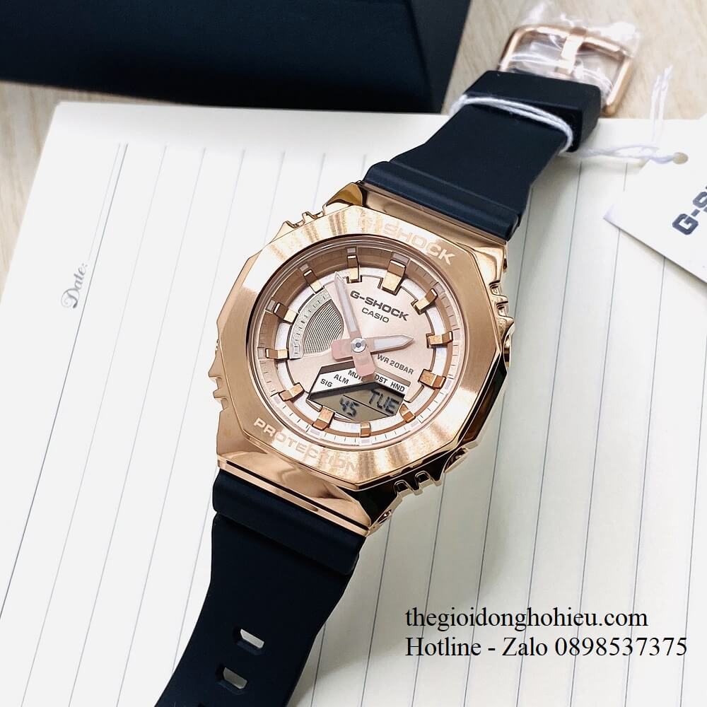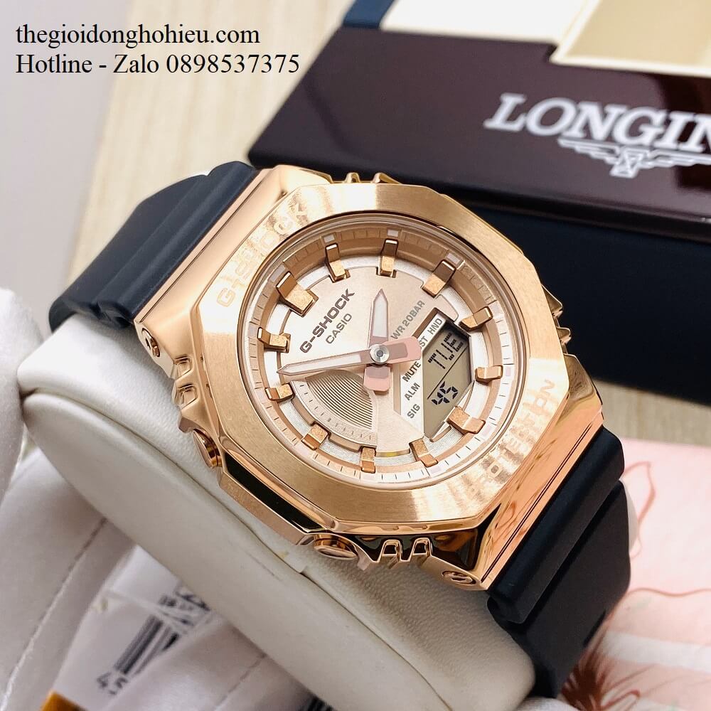 Mẫu đồng hồ G-Shock kim loại GM-S2100 đẹp xuất sắc chinh phục mọi khách hàng yêu thích G-Shock. Đồng hồ thanh mảnh, nhỏ gọn, ôm sát cổ tay của các bạn. Mặt đồng hồ hình bát giác tạo kiểu dáng độc đáo, vốn rất được ưa chuộng. Mặt số được mài mỏng, phủ thêm lớp ion phía ngoài. Cùng với kim chỉ giờ được tráng gương tạo nét lấp lánh, thu hút. Không chỉ đẹp, GM-S2100 sở hữu các tính năng: chống va đập, đèn led cực sáng, chống nước 200m,... giúp bạn gái thoải mái trong các hoạt động thường ngày. Bạn dễ dàng chọn một trong ba màu sắc: vàng đồng, đen, xanh rêu phù hợp với trang phục, sở thích của chính mình
