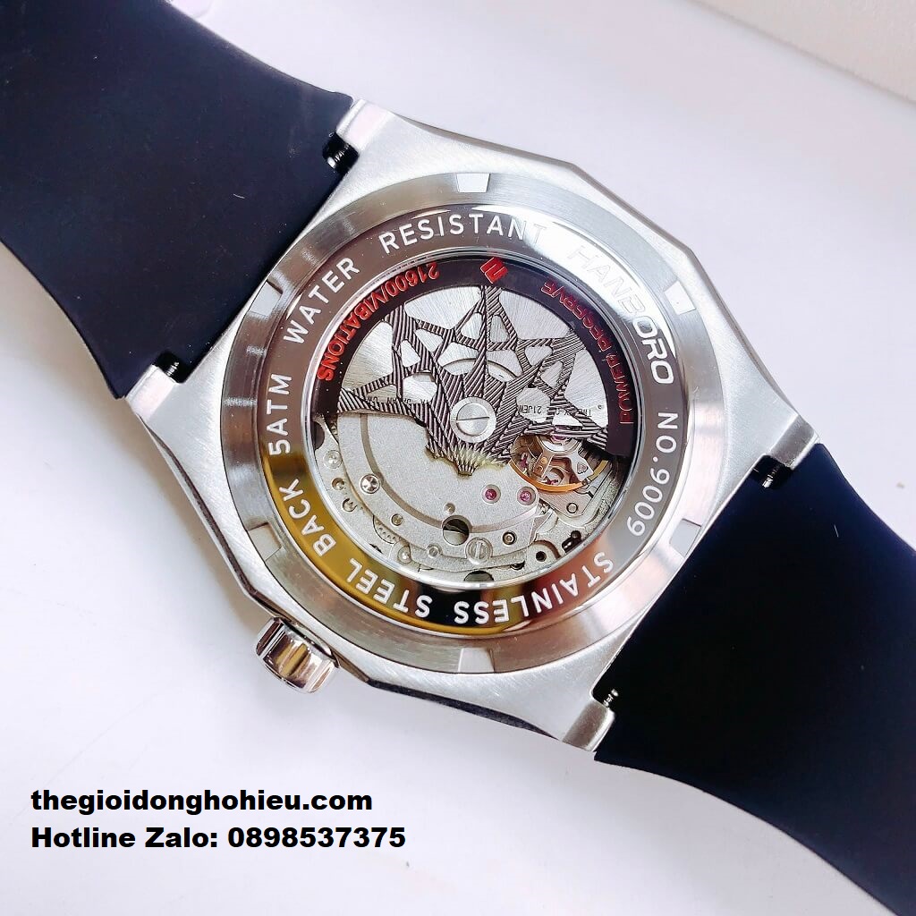 Chính sách bảo hành đồng hồ: Đồng Hồ Nam Hanboro 9009 Đính Đá Máy Tự Động Dây Cao Su Đen 42mm