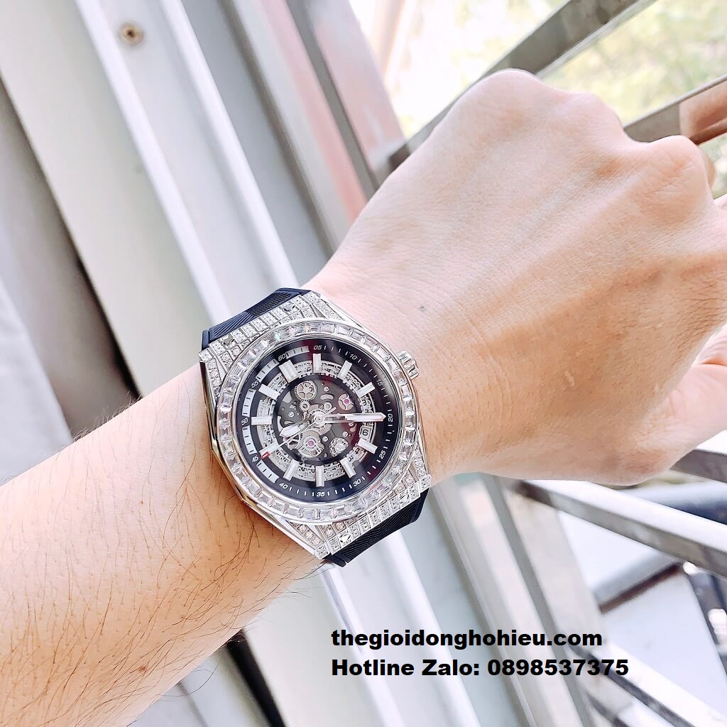 - Thiết kế kiểu dáng Hub.lot với viền đá pha lê rực rỡ
