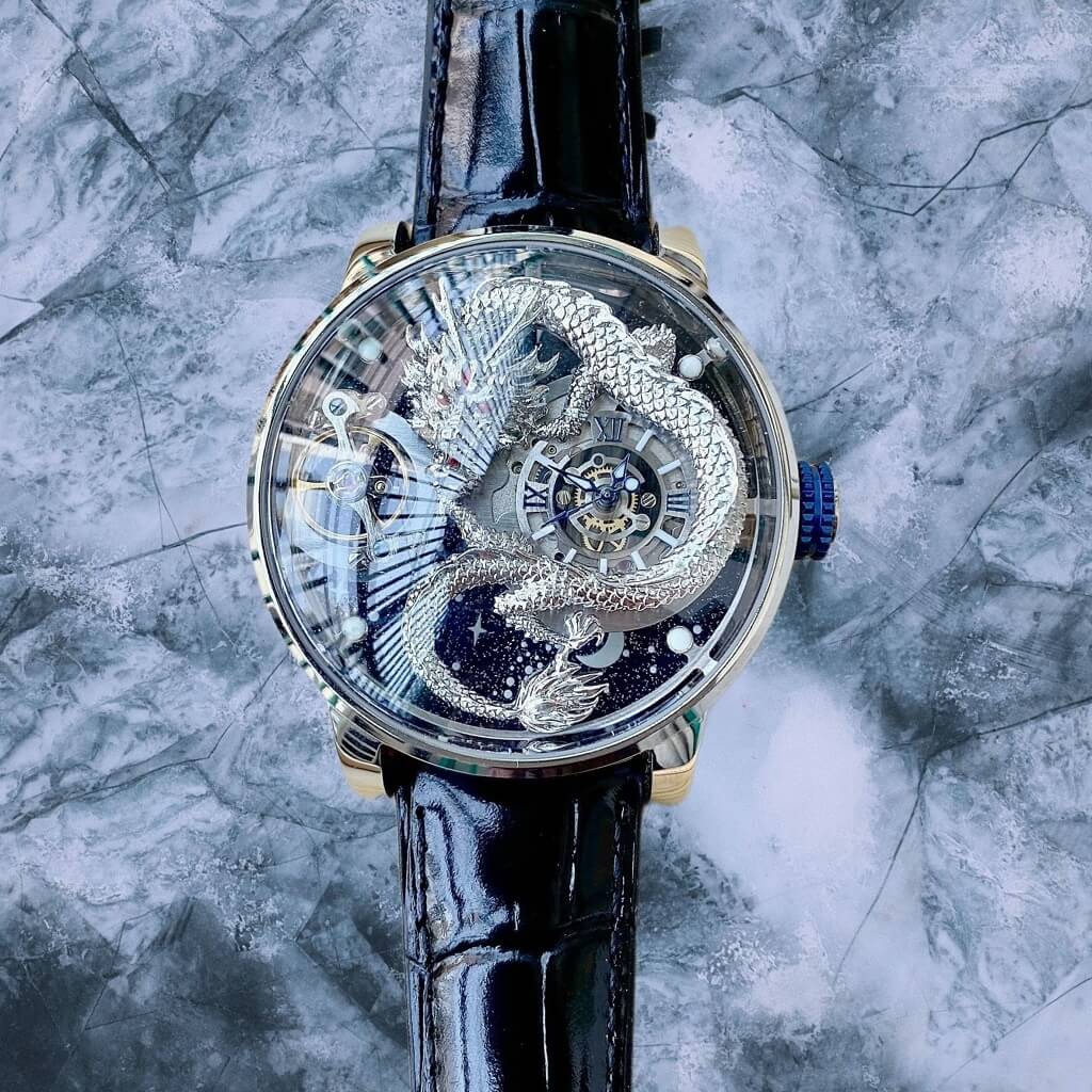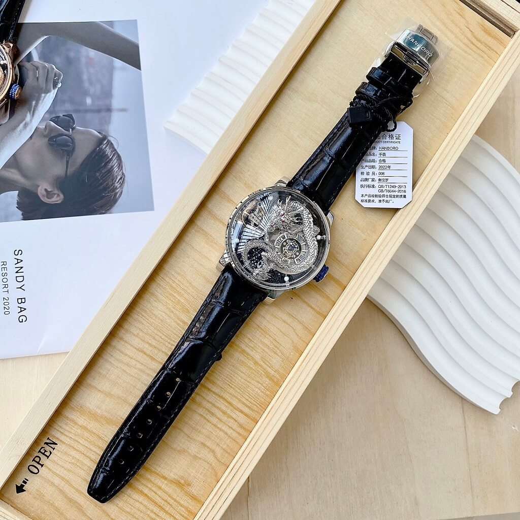 Thông số Đồng Hồ Nam Hanboro Rồng Máy Tự Động Dây Da Vỏ Silver 44mm Chính Hãng