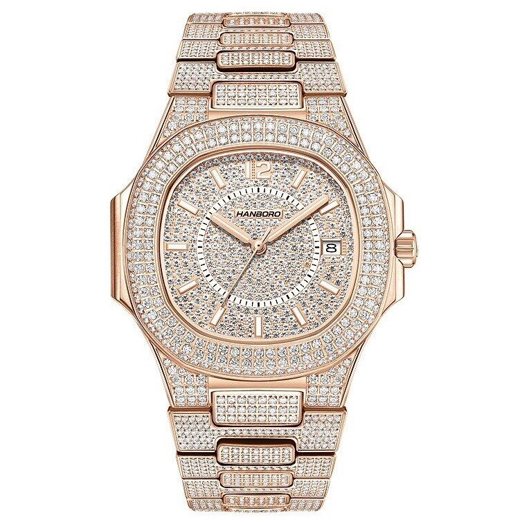 Hình Ảnh Đồng Hồ Nam Hanboro Tự Động 8025 Full Đá 38mm Rose Gold