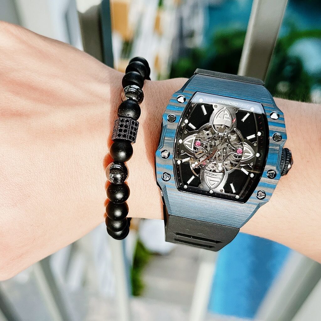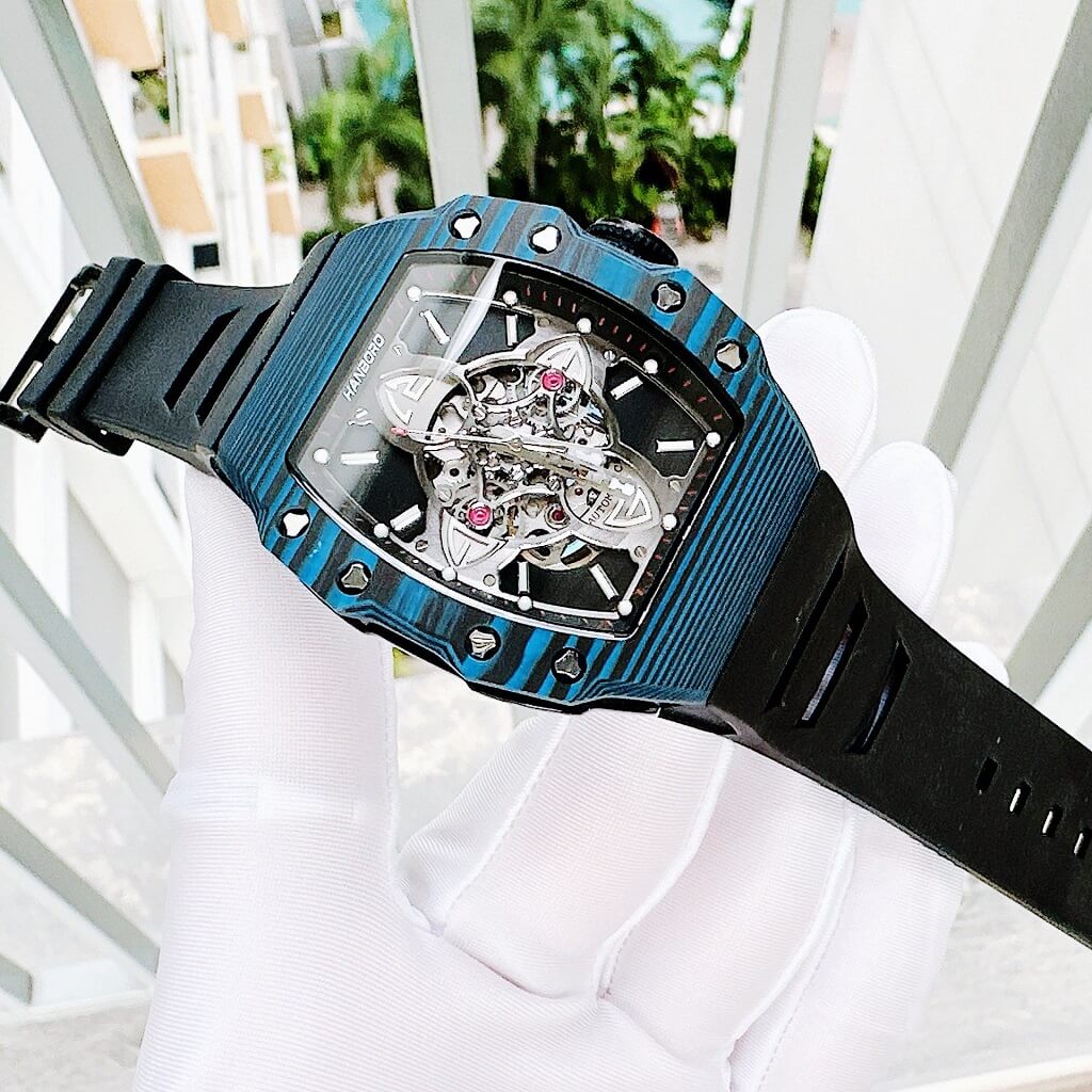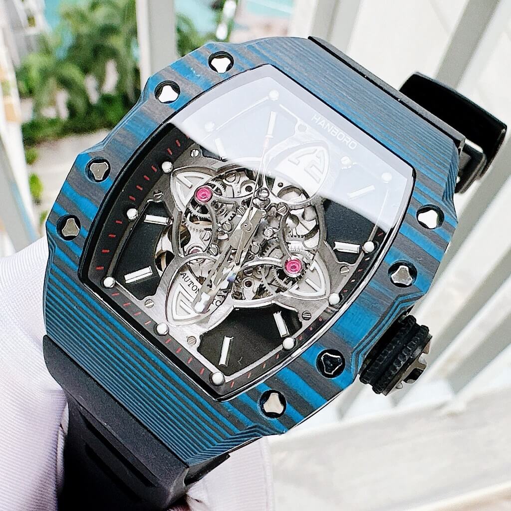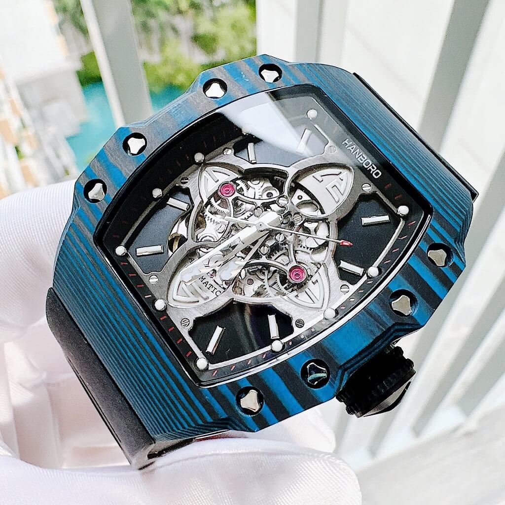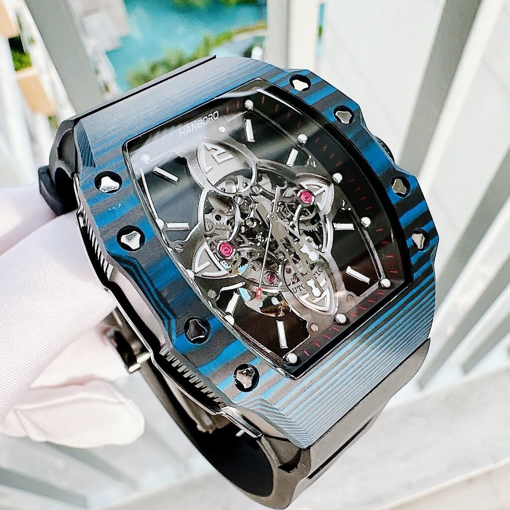 Hình Ảnh Đồng Hồ Nam Hanboro Tự Động Dây Cao Su Vỏ Black 40x50mm