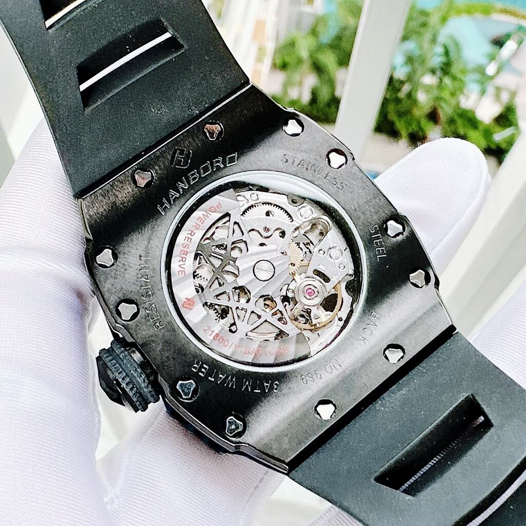 Thông số Đồng Hồ Nam Hanboro Tự Động Dây Cao Su Vỏ Black 40x50mm Chính Hãng
