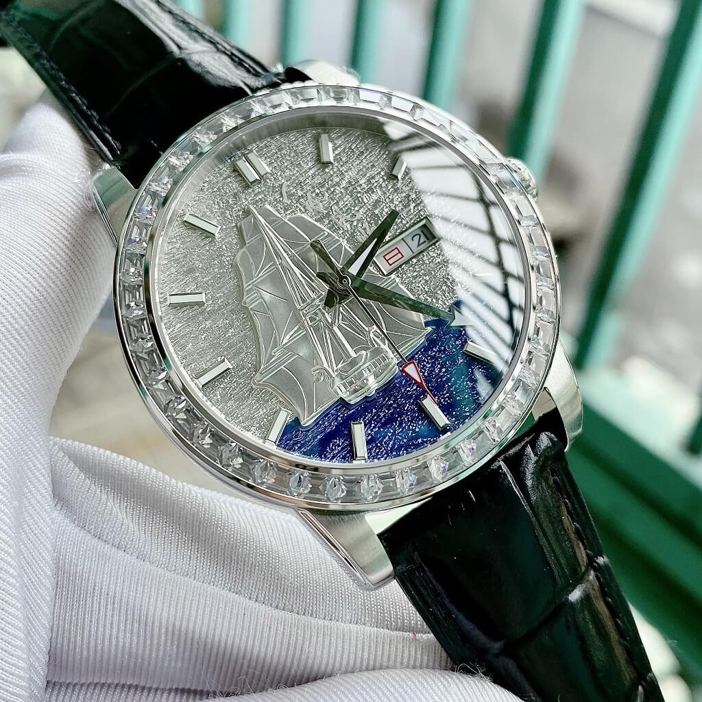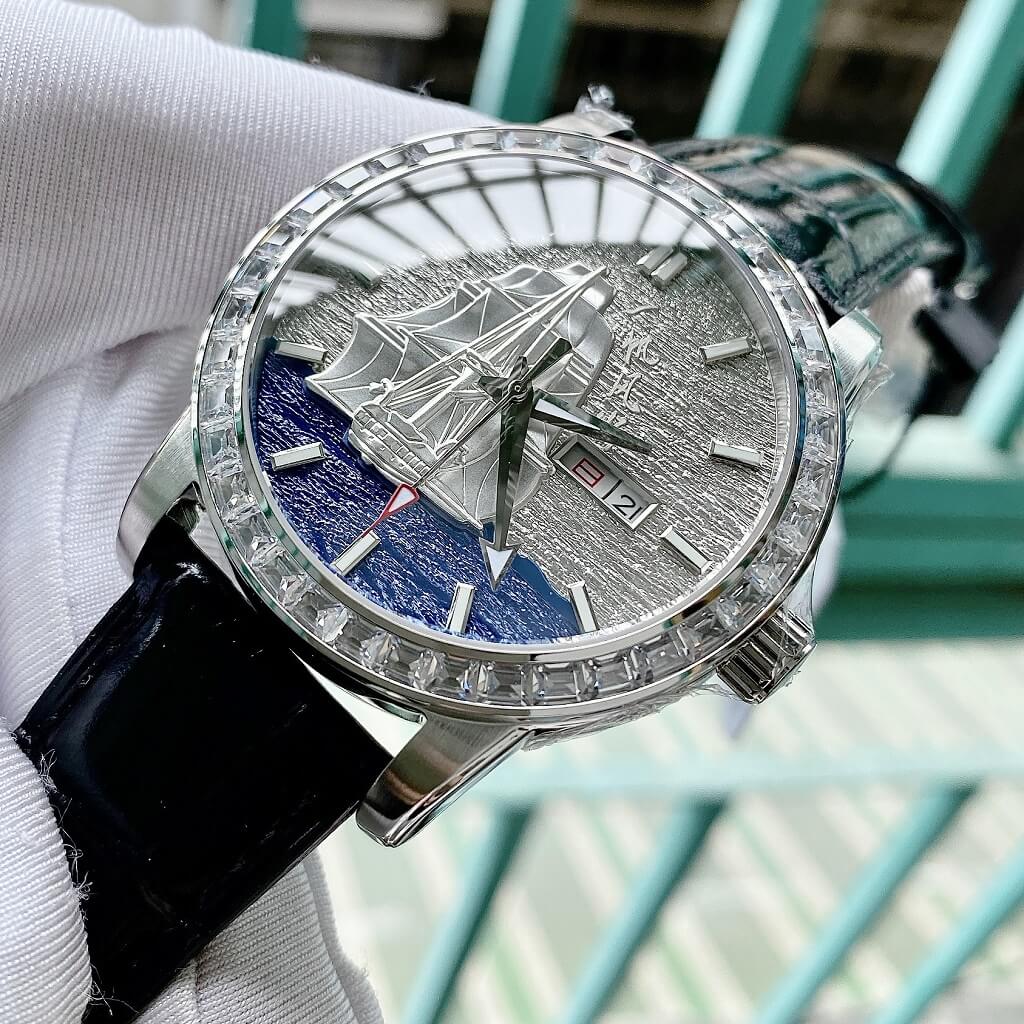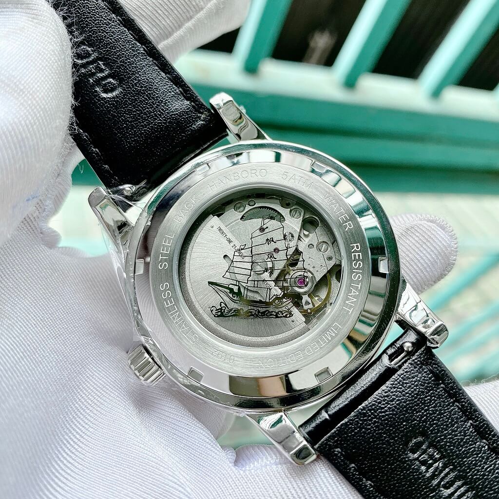 - Đồng hồ Hanboro thuyền buồm dây da chính hãng dành cho nam, máy cơ tự động Japan bền bỉ
