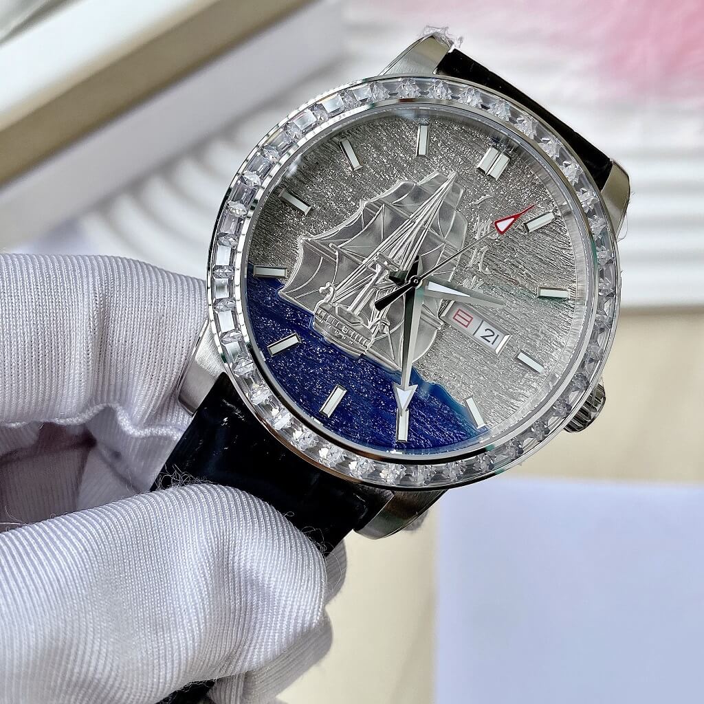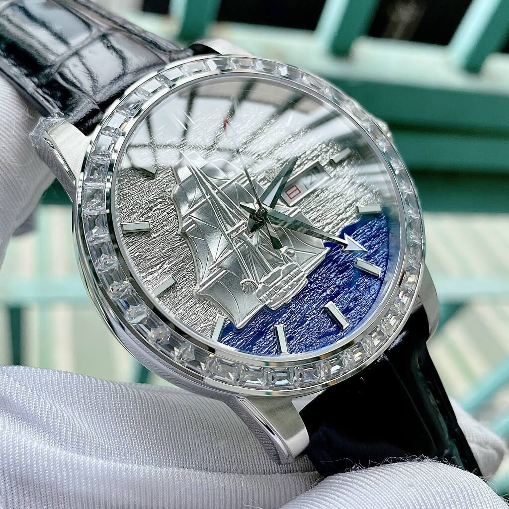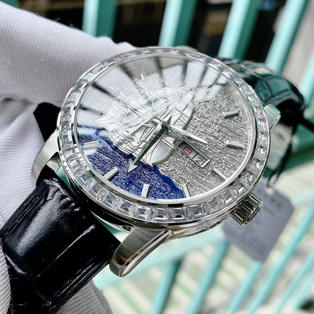 - Thiết kế kiểu dáng Patek cổ điển, thanh lịch, viền đính pha lê lấp lánh