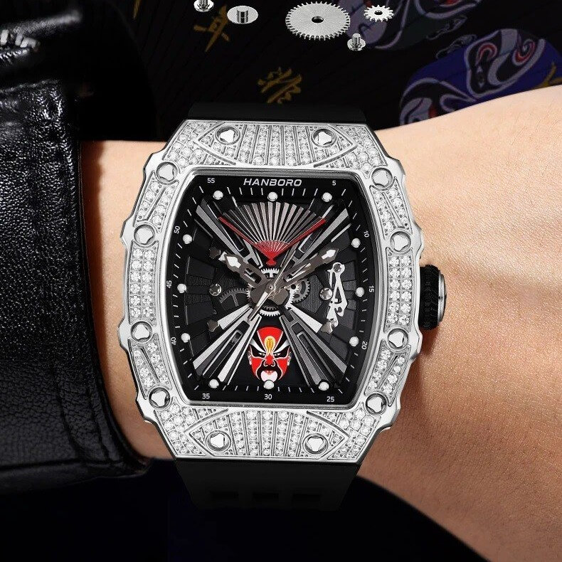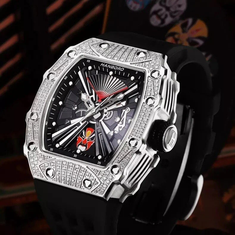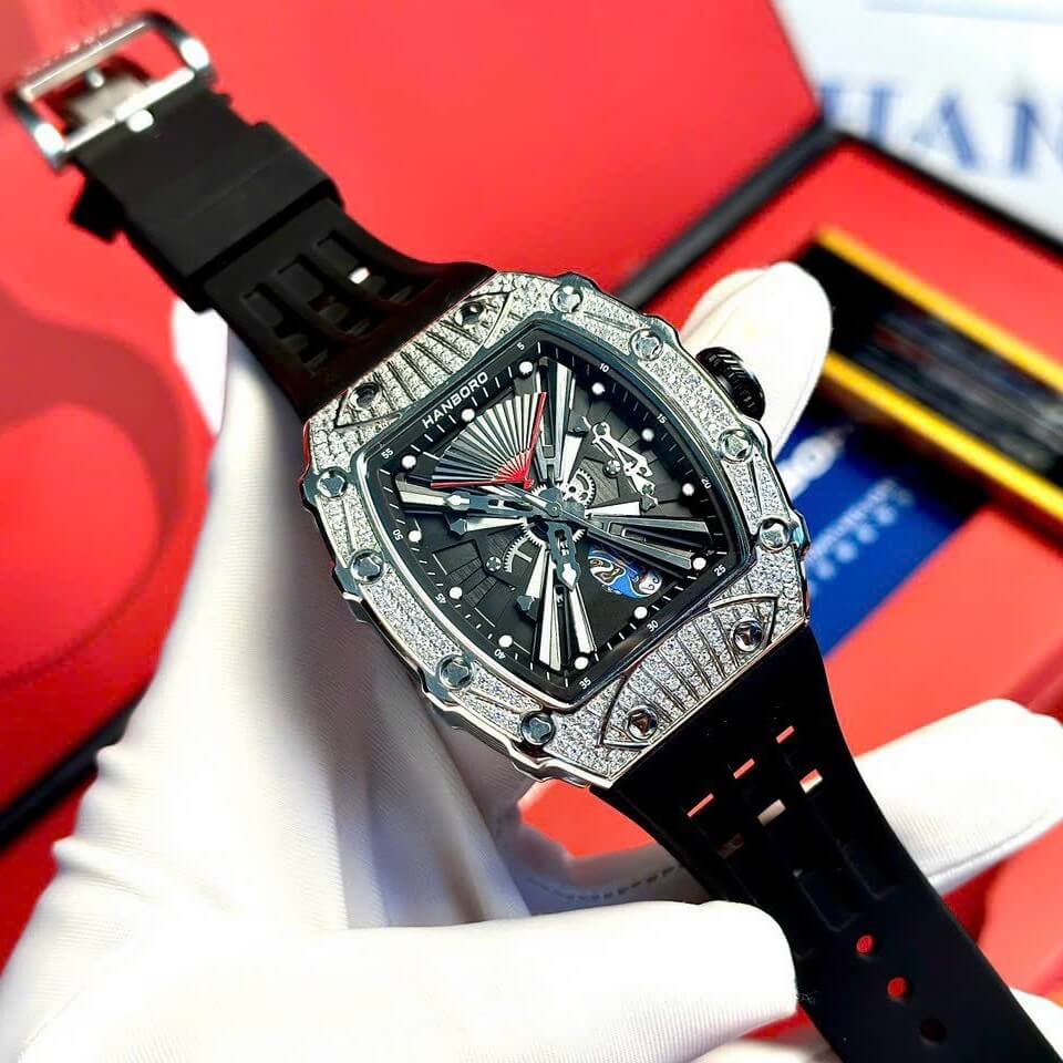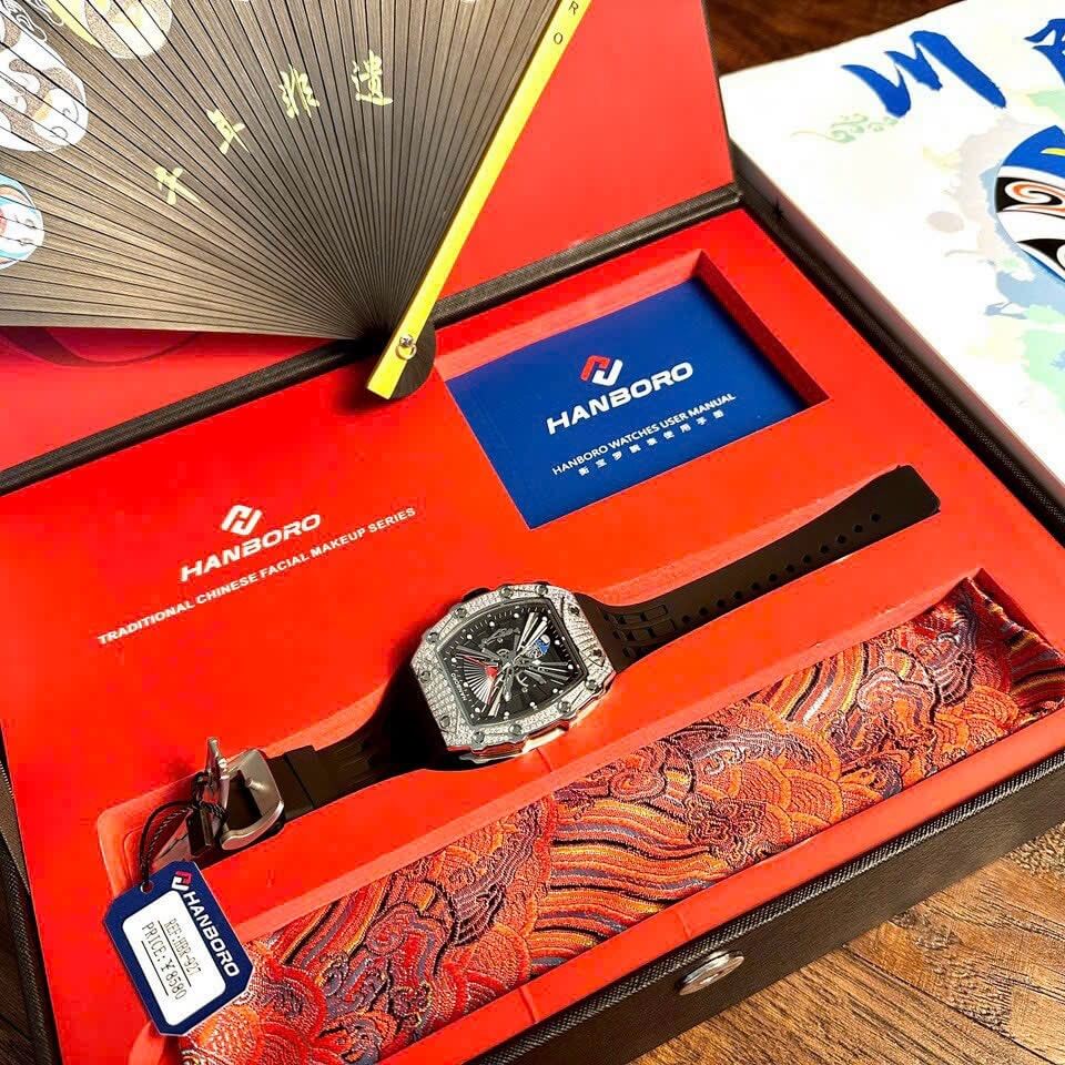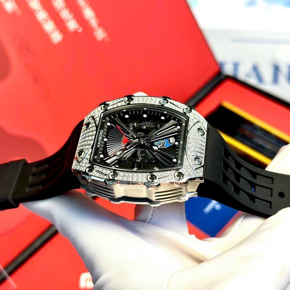 - Đồng hồ Hanboro dây silicone chính hãng dành cho nam, máy cơ tự động Japan bền bỉ