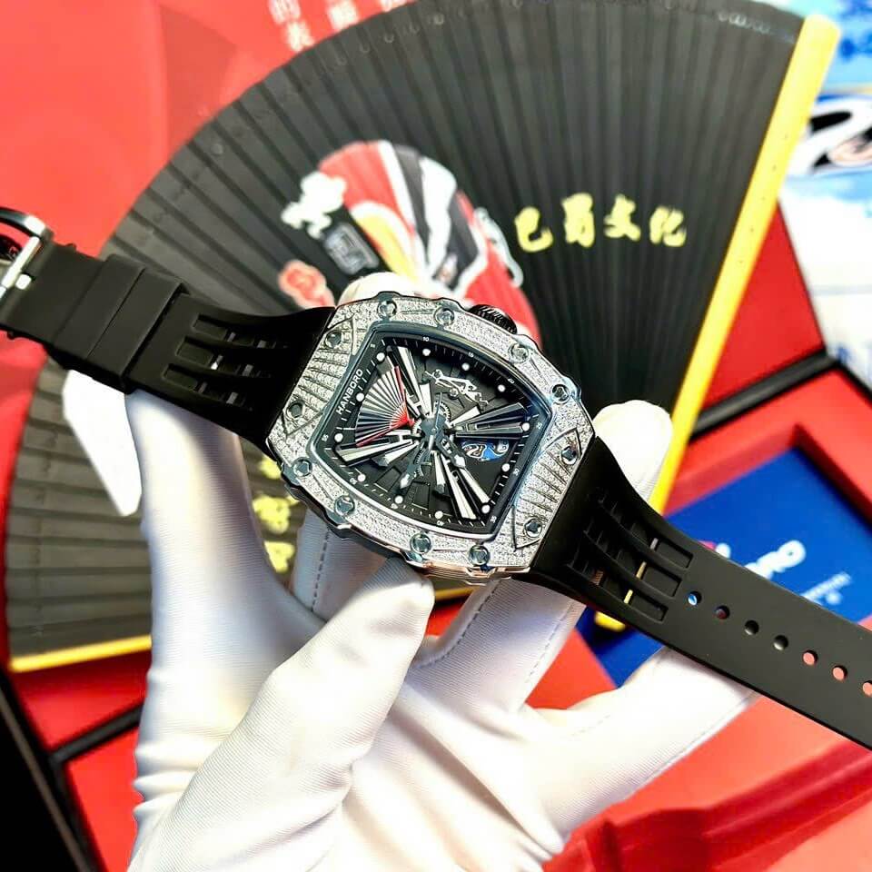 Hình Ảnh Đồng Hồ Nam Hanboro Tự Động Dây Silicone Đen Vỏ Silver 41x50mm HBR 927