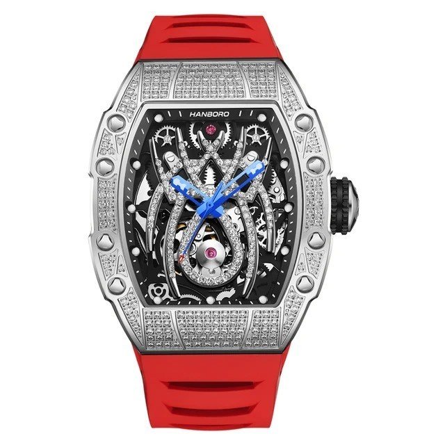 Hình Ảnh Đồng Hồ Nam Hanboro Tự Động Dây Silicone Đỏ Vỏ Silver 41x50mm HBR 922