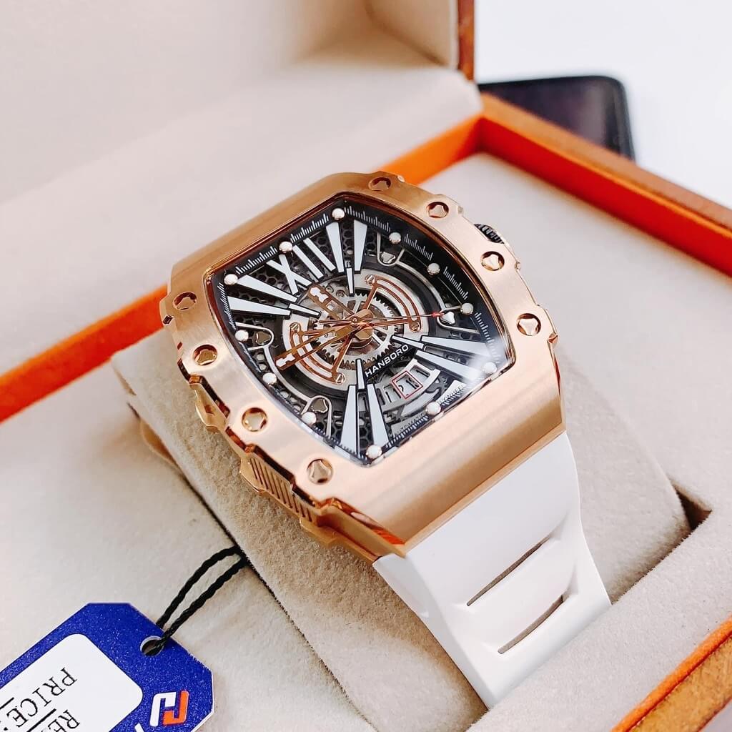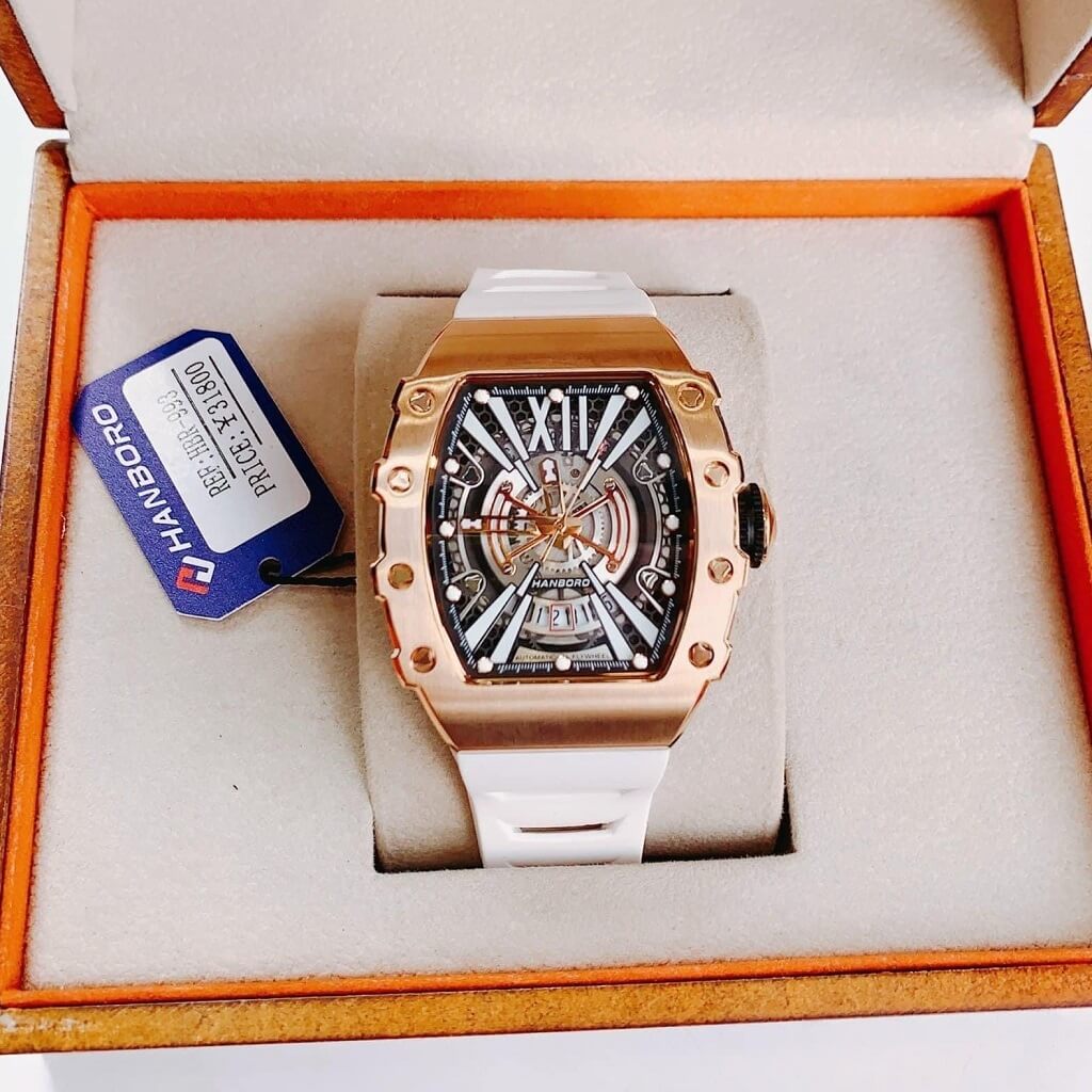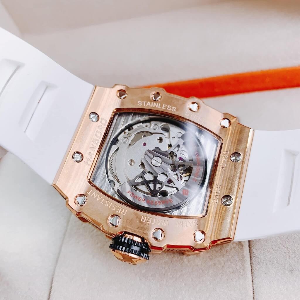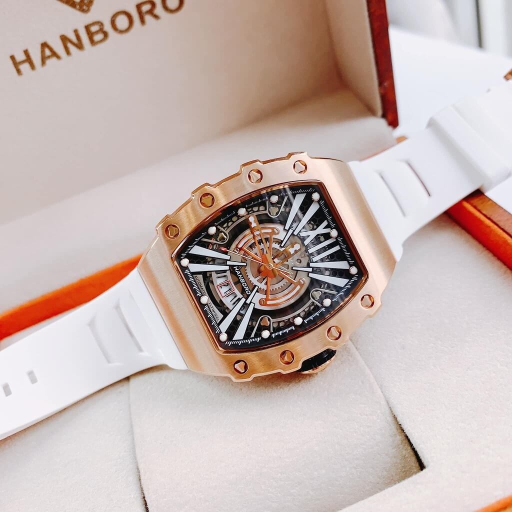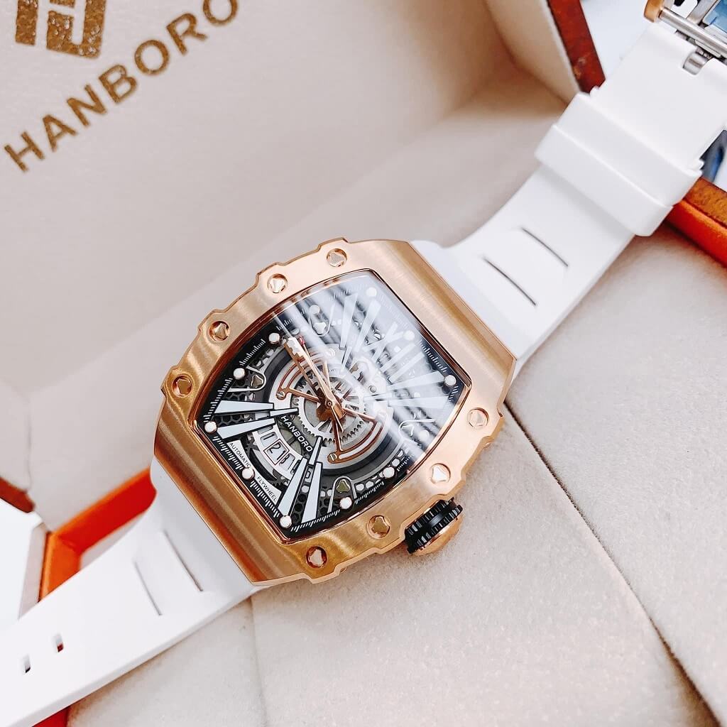 Thông số Đồng Hồ Nam Hanboro Tự Động Dây Silicone Trắng Vỏ Rose Gold 41x50mm HBR 993 Chính Hãng