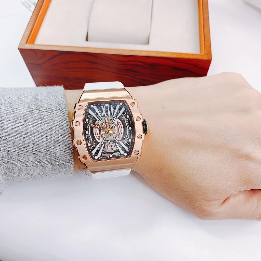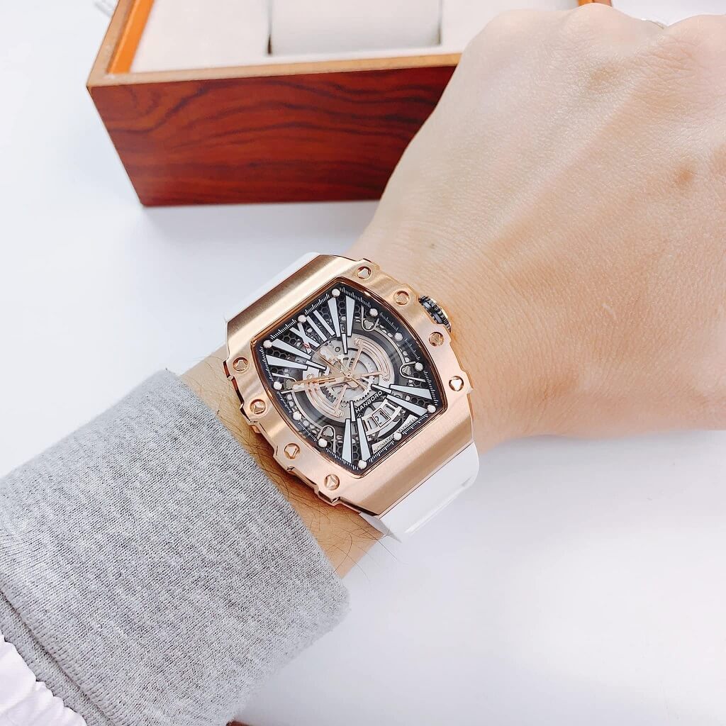 Hình Ảnh Đồng Hồ Nam Hanboro Tự Động Dây Silicone Trắng Vỏ Rose Gold 41x50mm HBR 993