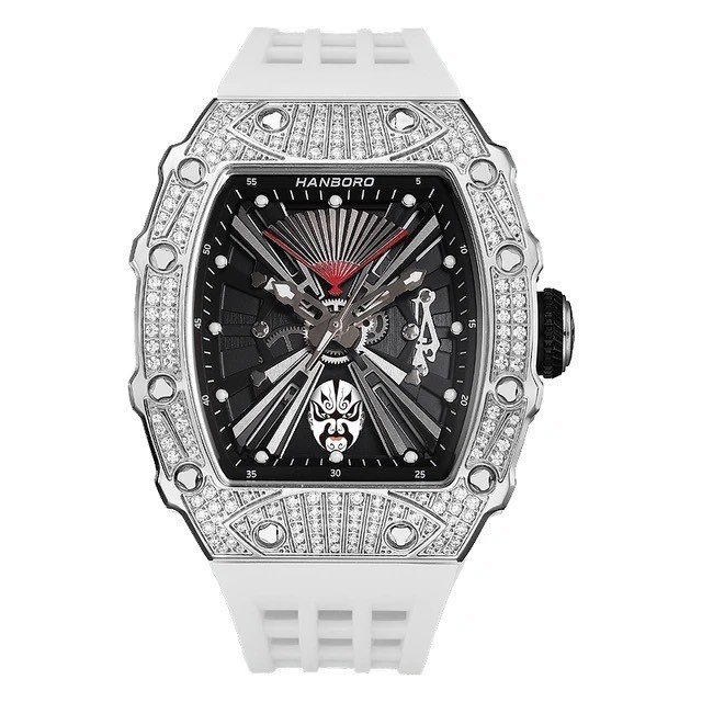 Hình Ảnh Đồng Hồ Nam Hanboro Tự Động Dây Silicone Trắng Vỏ Silver 41x50mm HBR 927