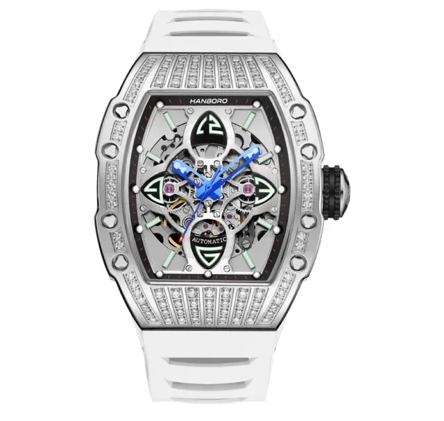 Hình Ảnh Đồng Hồ Nam Hanboro Tự Động Dây Silicone Trắng Vỏ Silver 41x50mm HBR 989