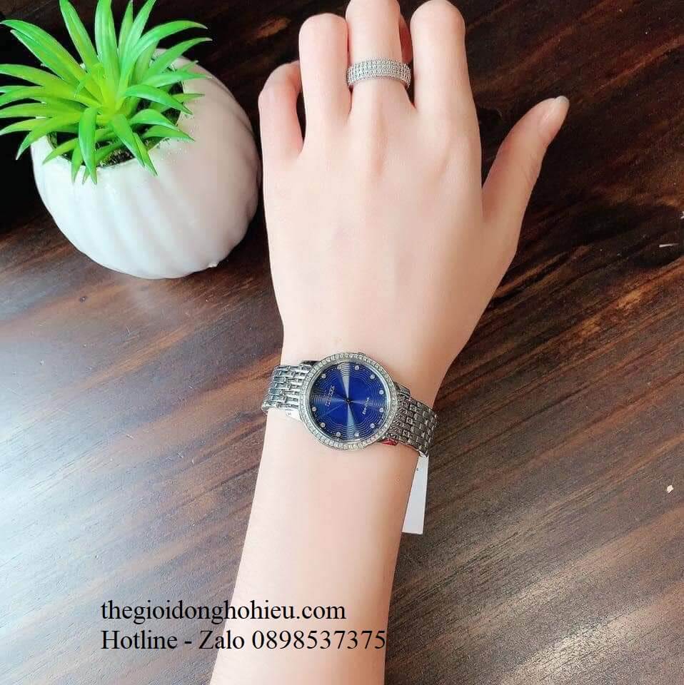 Vỏ đồng hồ màu bạc kết hợp cùng dây đeo nhuyễn 7 link tạo nên vẻ nữ tính sang trọng