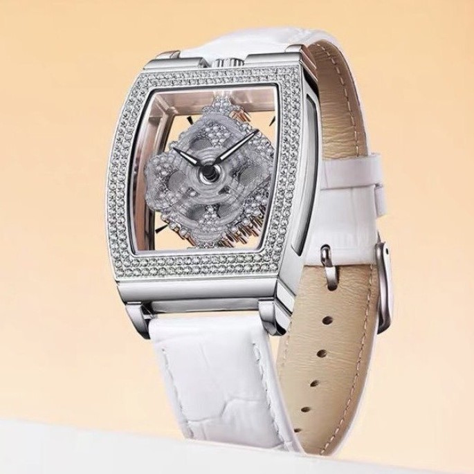 Mặt kính sapphire trong lộ máy tuyệt đẹp, full đá swarovski