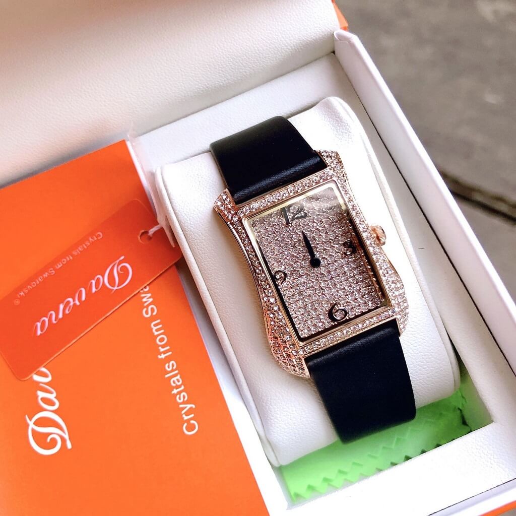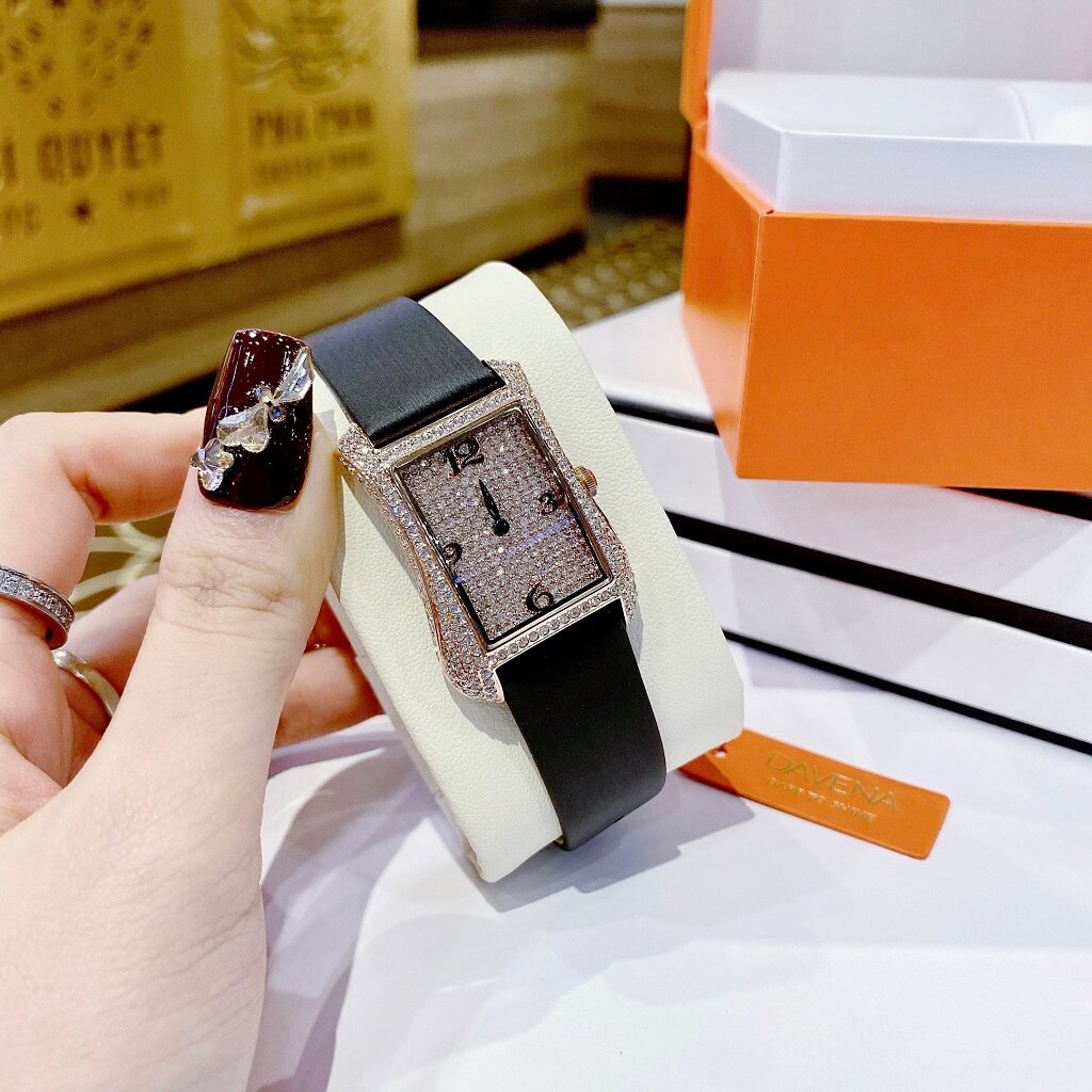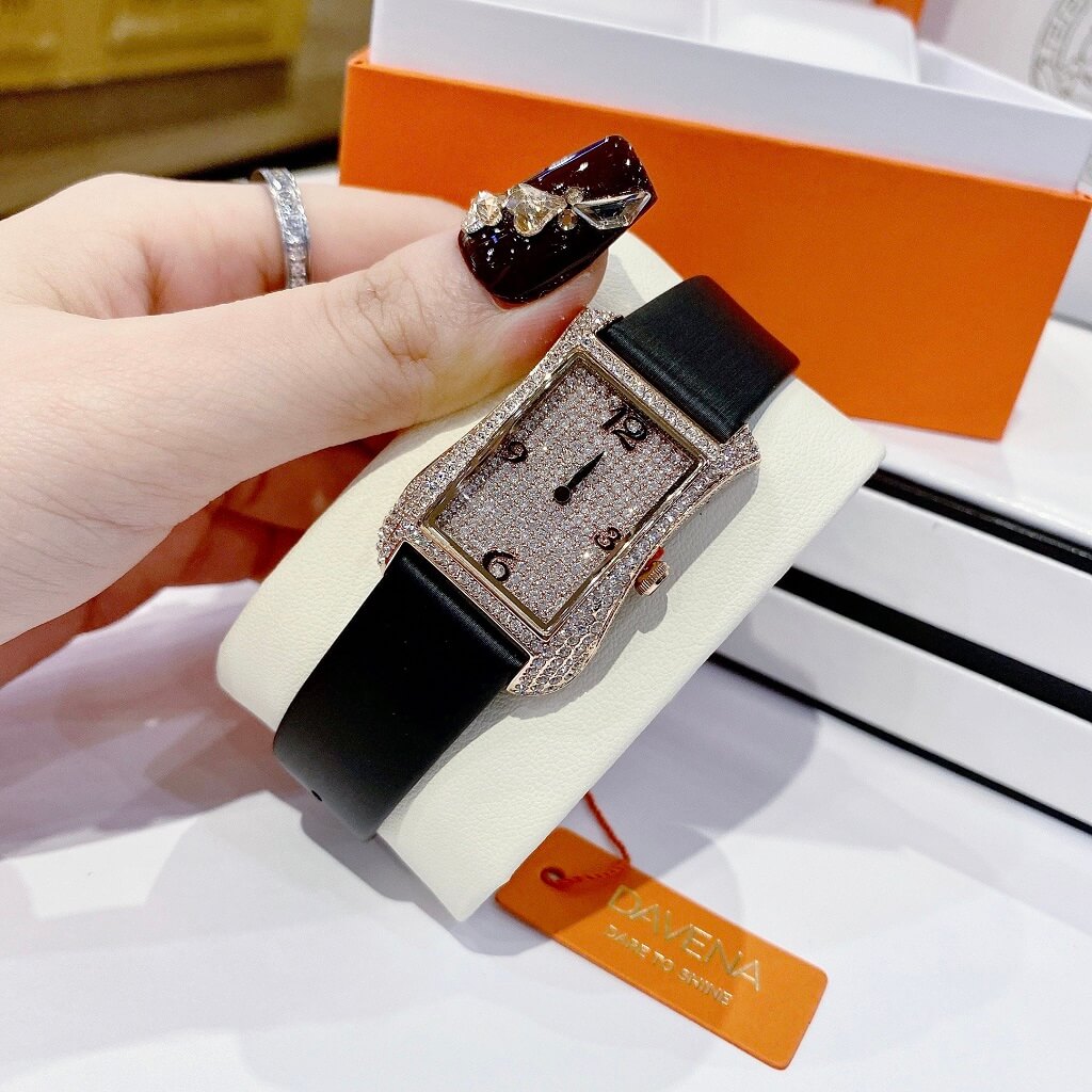 - Đồng Hồ Nữ Davena 31609 Dây Da Đen Rose Gold 32mm chính hãng máy Nhật
