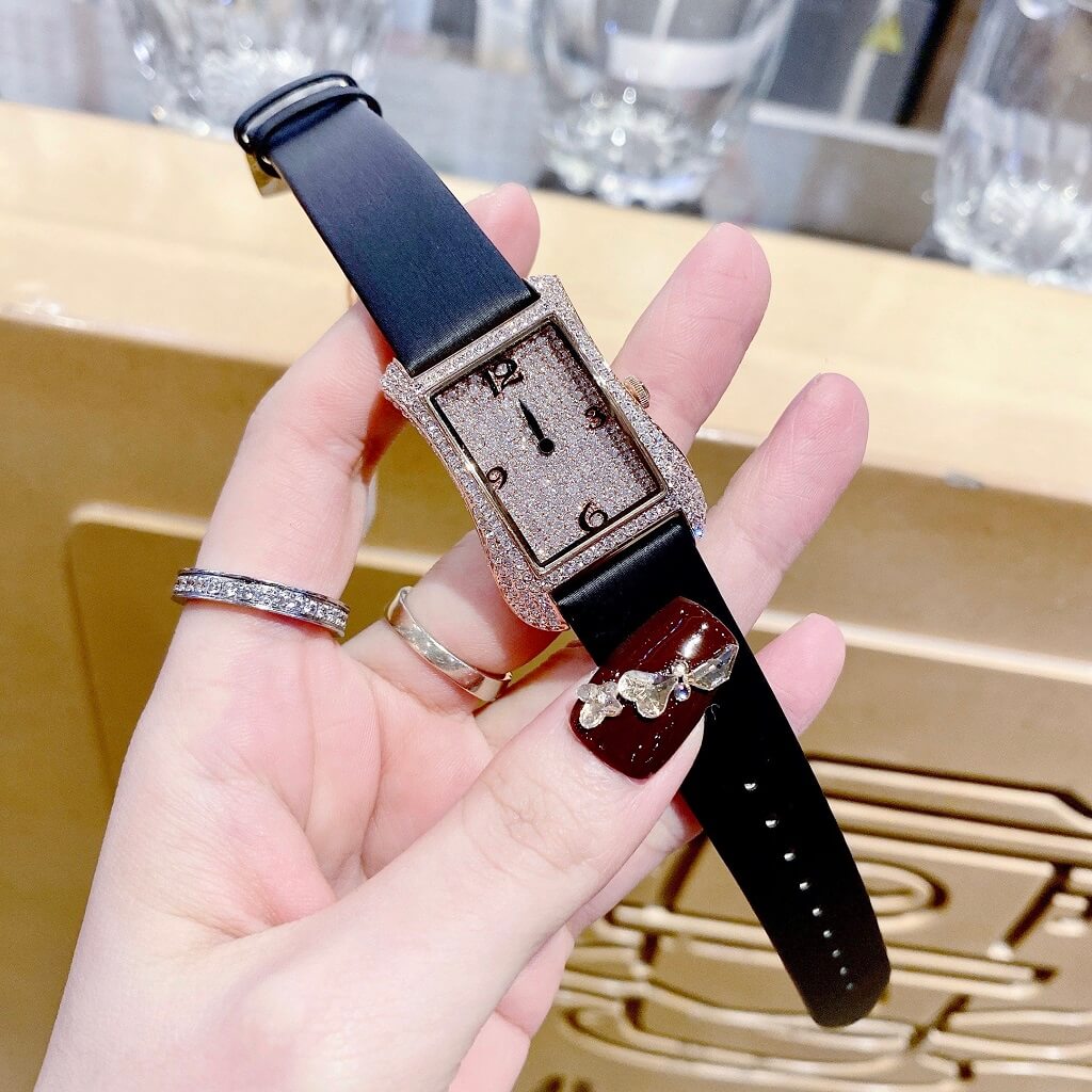 - Mặt full đá sáng lấp lánh kết hợp với quai dây lụa satin mềm mại.