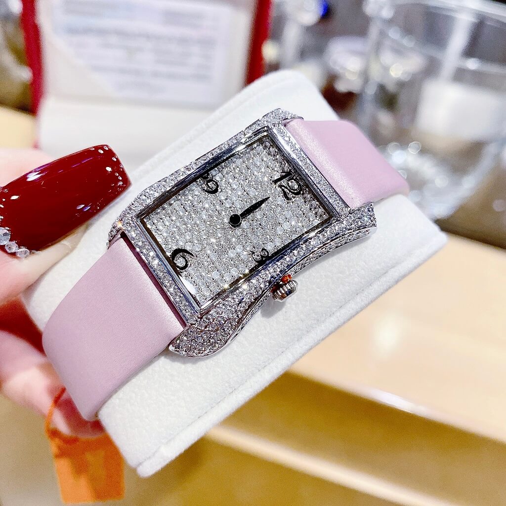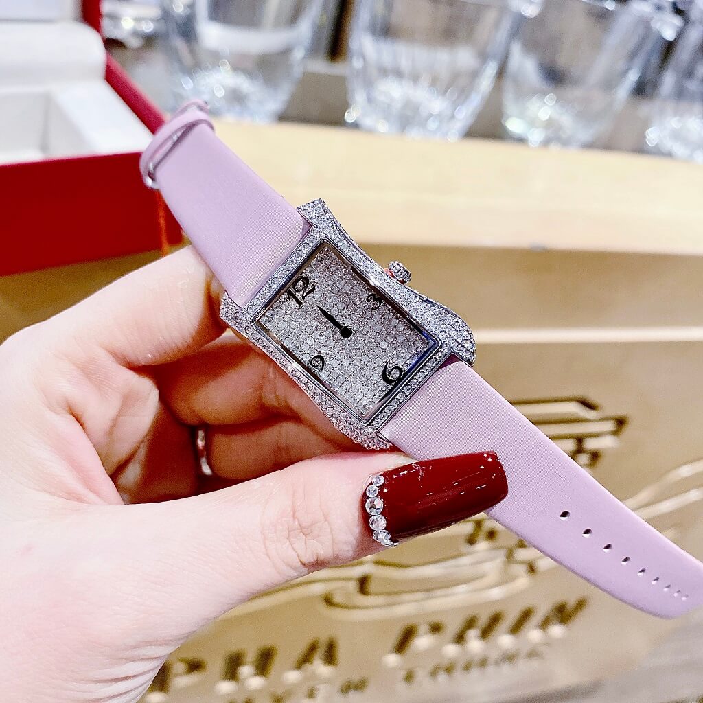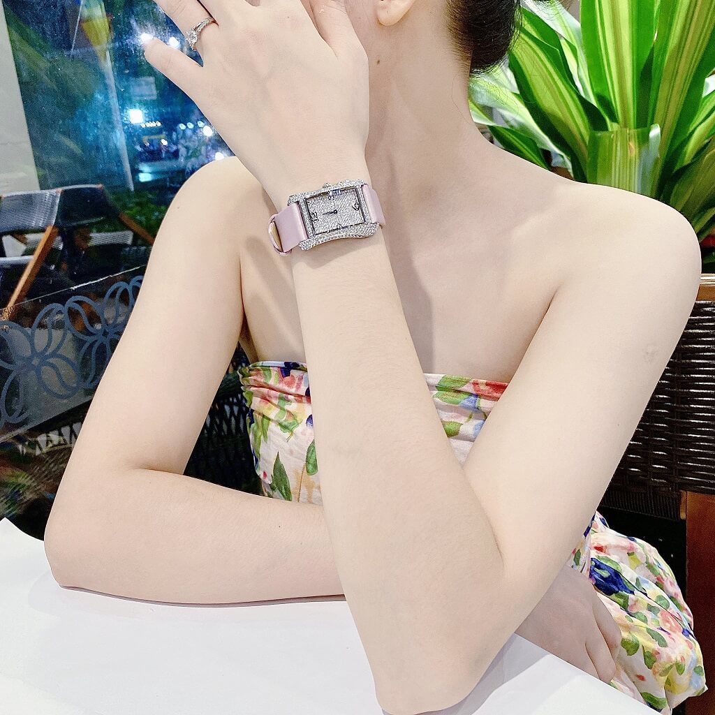 - Mặt full đá sáng lấp lánh kết hợp với quai dây lụa satin mềm mại.