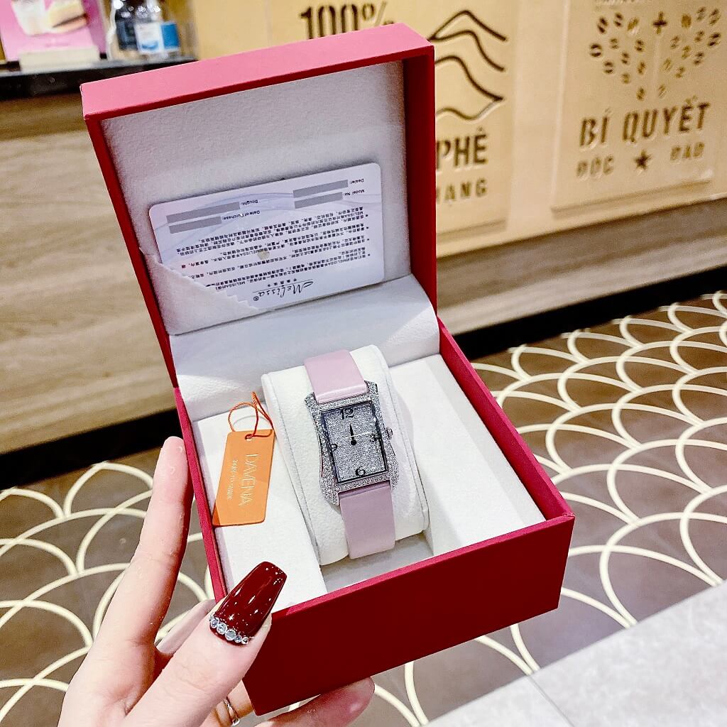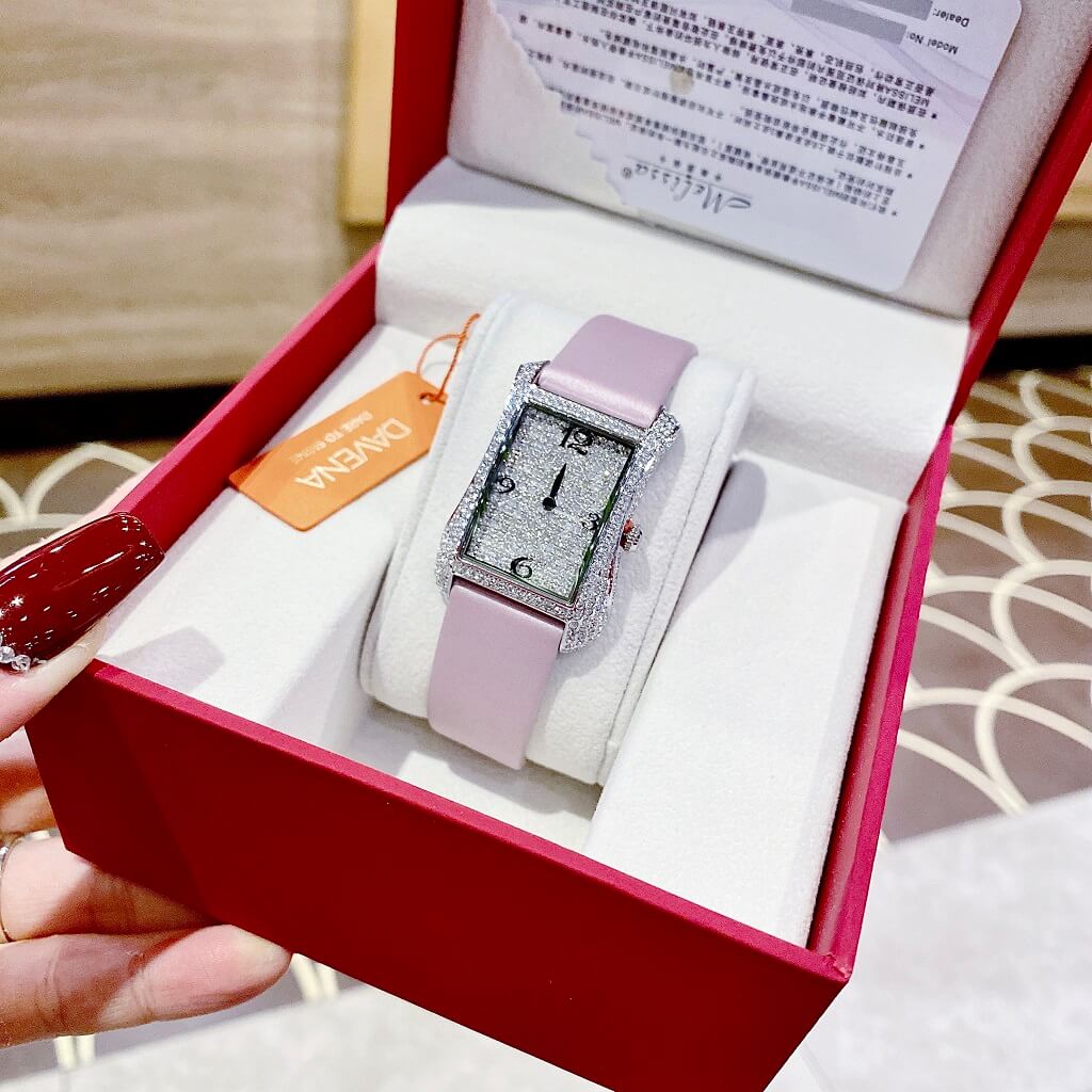 - Đồng Hồ Nữ Davena 31609 Dây Da Hồng Silver 32mm chính hãng máy Nhật