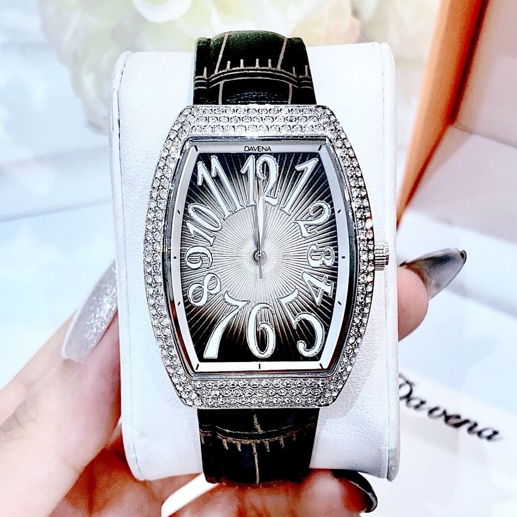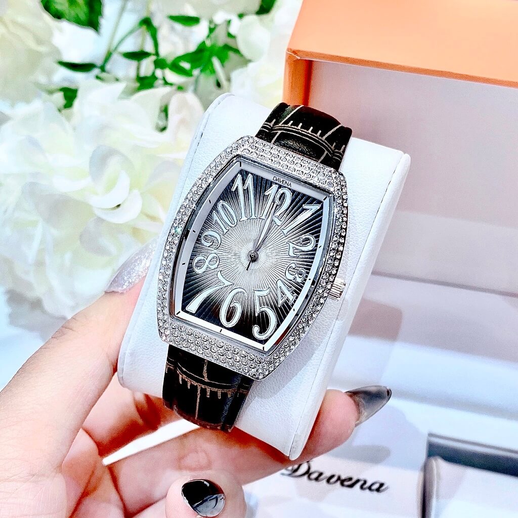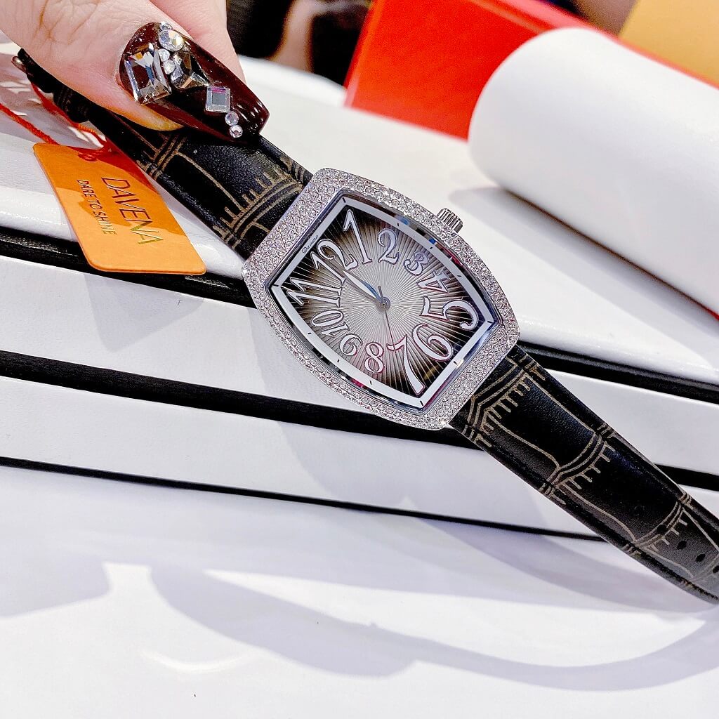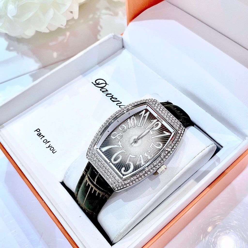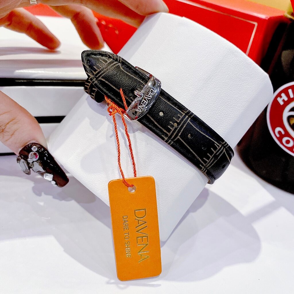 - Đồng Hồ Nữ Davena 31820 Dây Da Đen Silver 32mm chính hãng máy Nhật