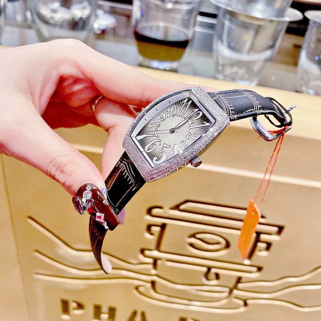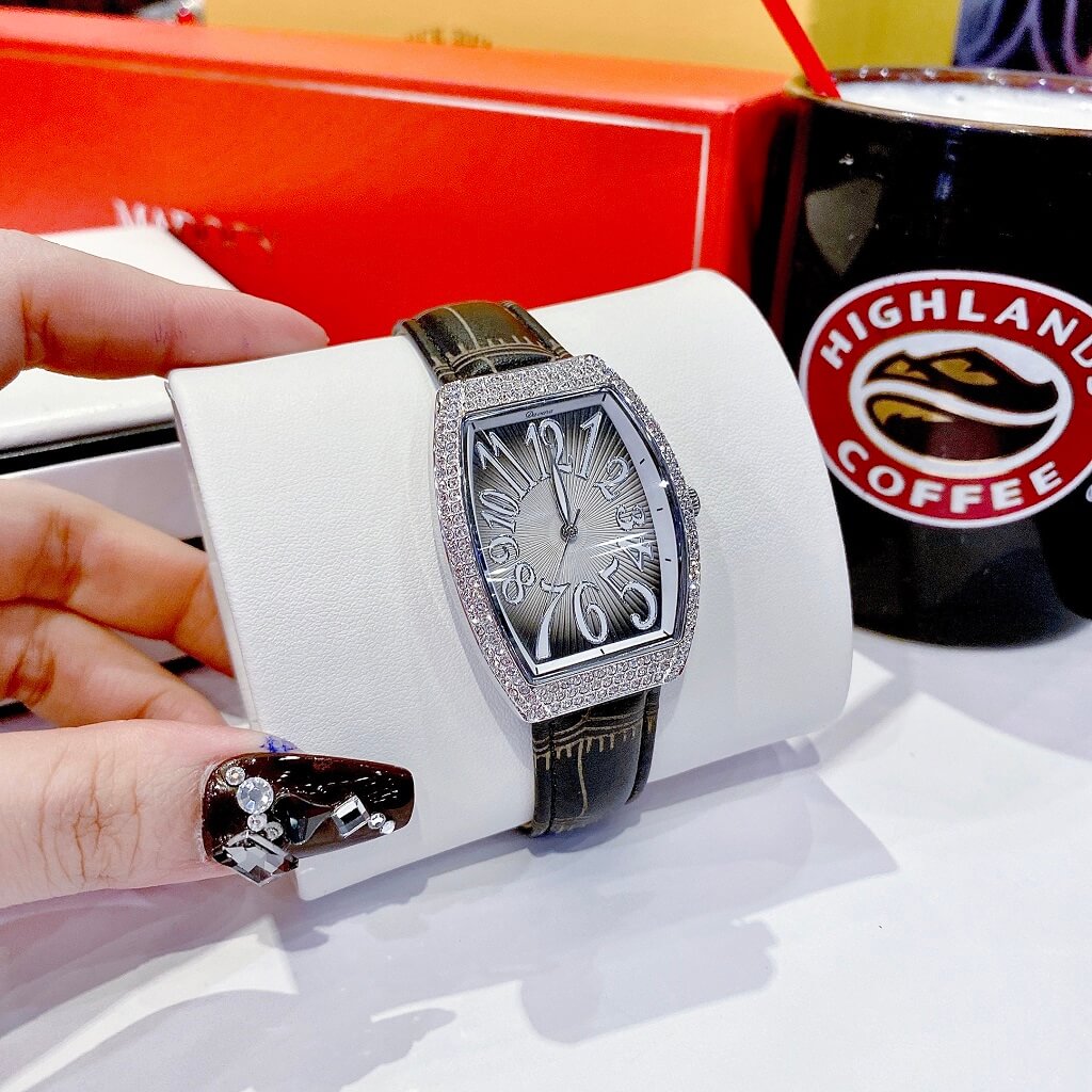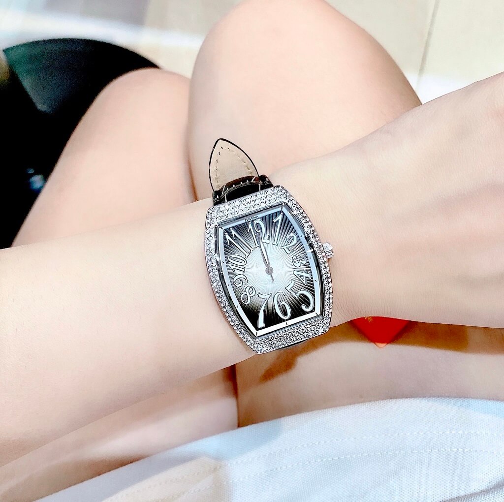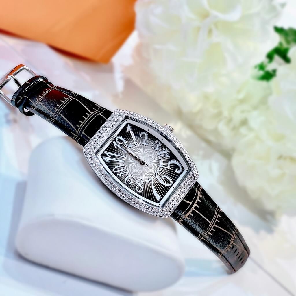 - Mặt số viền đính full đá Swarovski, dây da thật màu đen tinh tế và mềm mại.